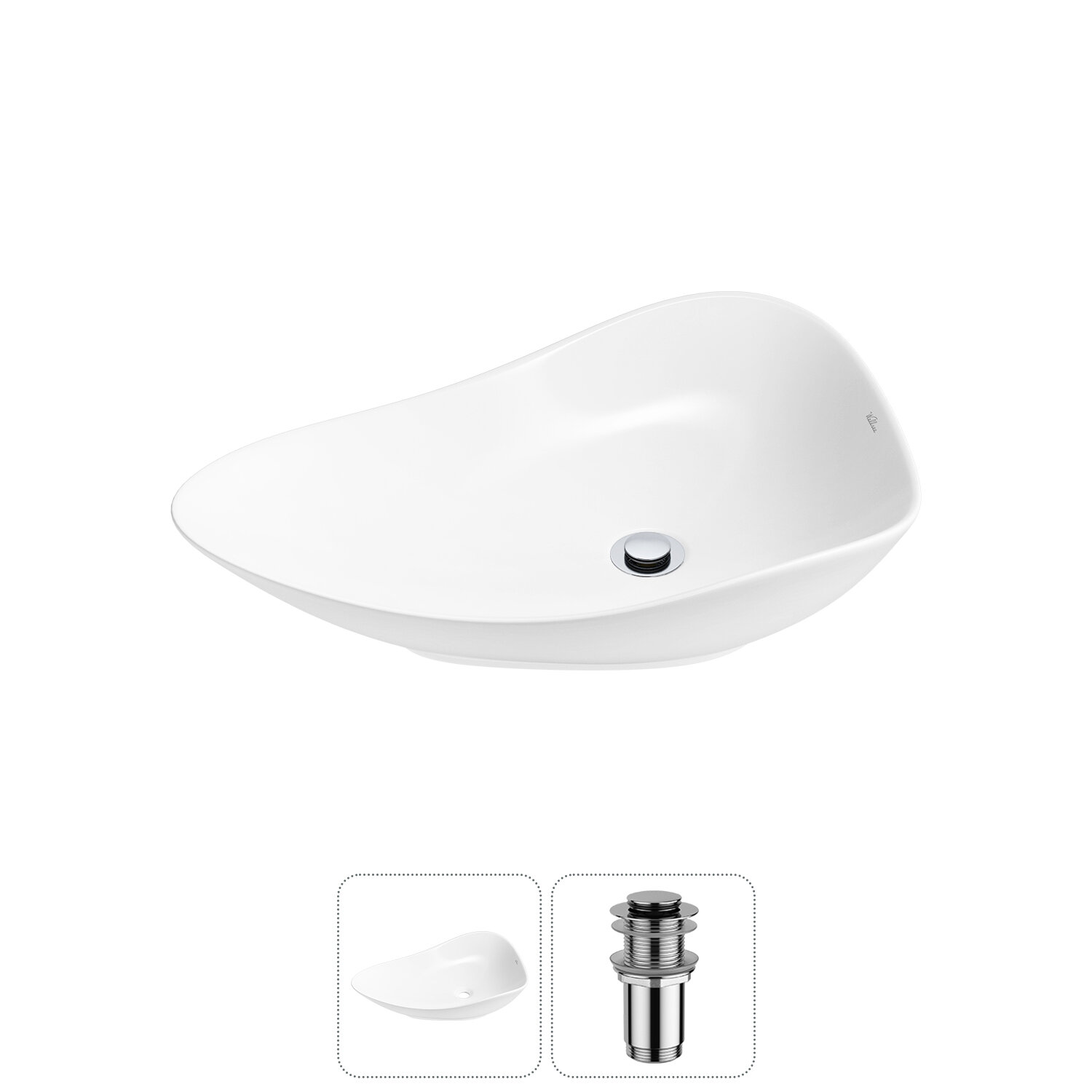 Накладная раковина в ванную комнату Wellsee Nexus Flex 20214031R в наборе 2 в 1: раковина 60 см в цвете белый глянец, донный клапан в цвете хром информация: