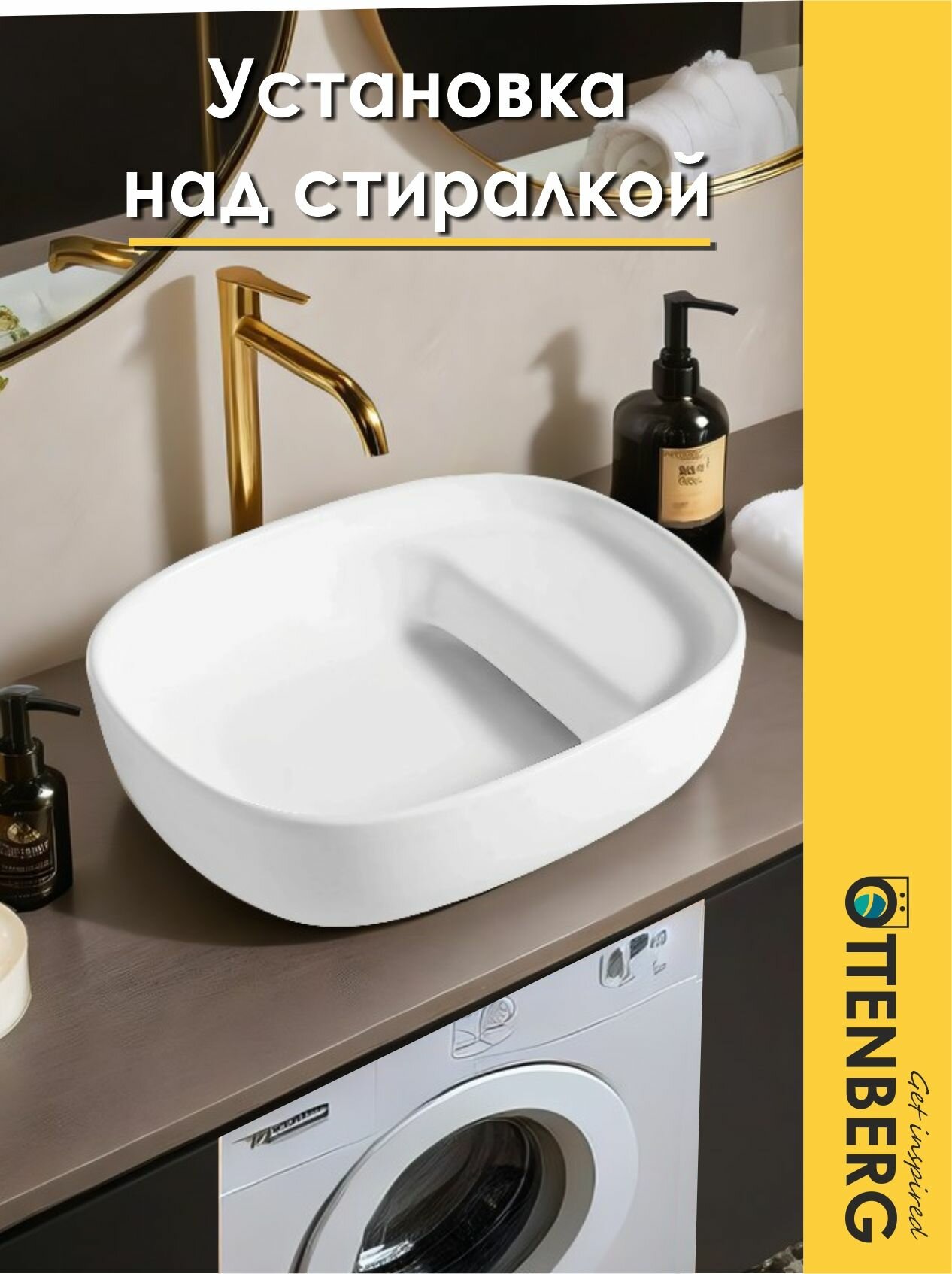 Отзывы на Раковина накладная в ванную со смещенным сливом прямоугольная белая Ottenberg, 46х37х18см