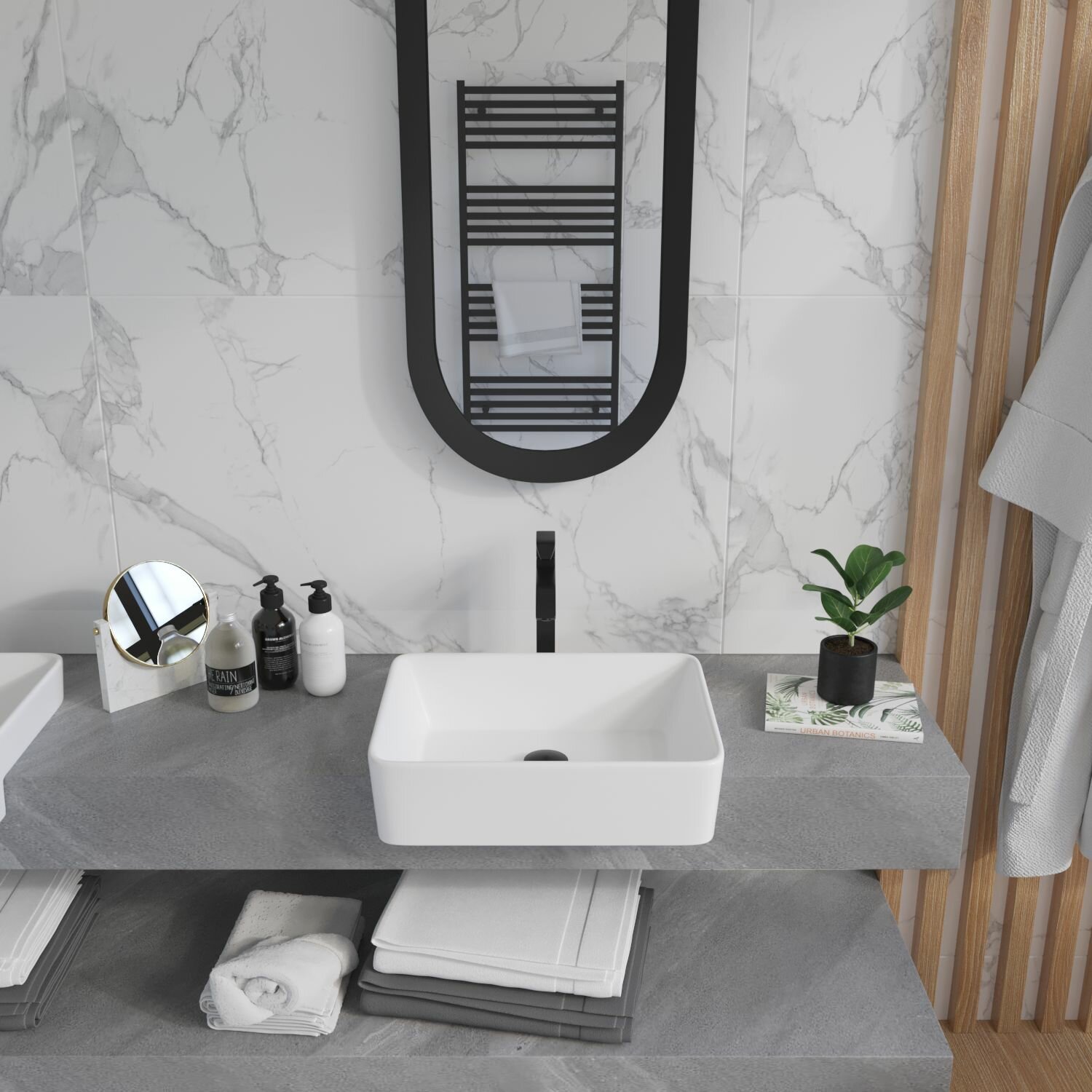Накладная-подвесная раковина для ванной Lavinia Boho Bathroom Sink 33311023: прямоугольная, ширина умывальника 40 см, цвет глянцевый белый