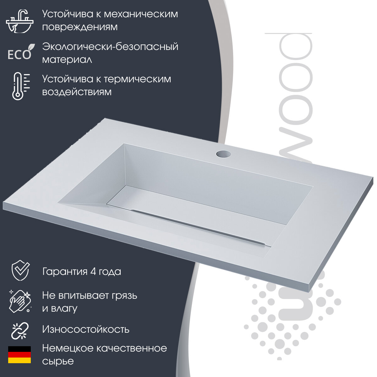 Раковина для ванной Uperwood Next 80 см, белая глянцевая информация: