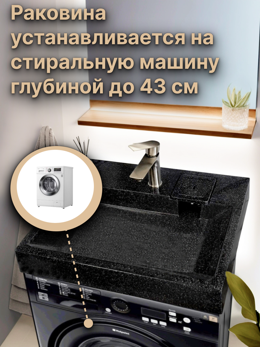Отзывы на Раковина над стиральной машиной BORNEO 60х55, цвет Чёрный кварц, литьевой мрамор