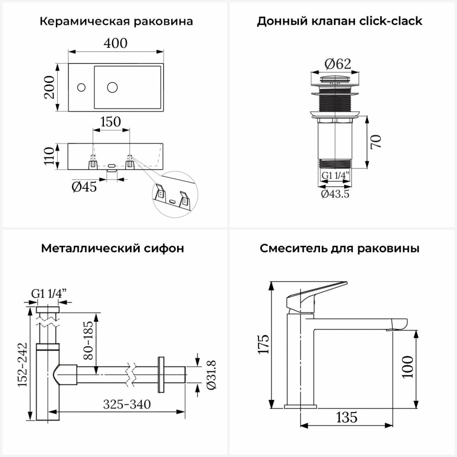 Отзывы на Подвесная или накладная раковина для ванной Lavinia Boho Bathroom Sink 20216001R в наборе 4 в 1: раковина 40 см (белый глянец), донный клапан, сифон, смеситель (цвет набора хром)