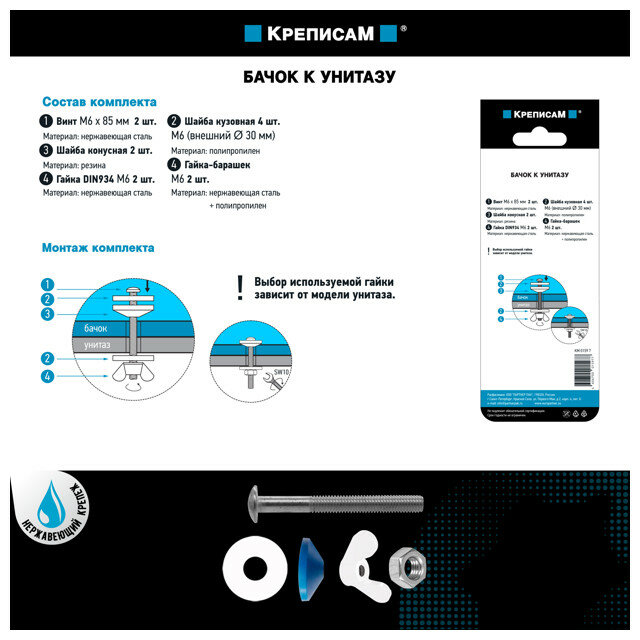 Крепление для бачка к унитазу креписам М6 2шт информация: