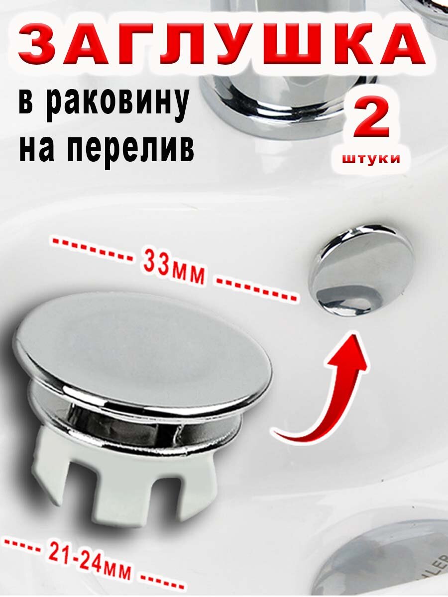 Заглушка в раковину на перелив, хромированный ABS-пластик, 2 штуки информация:
