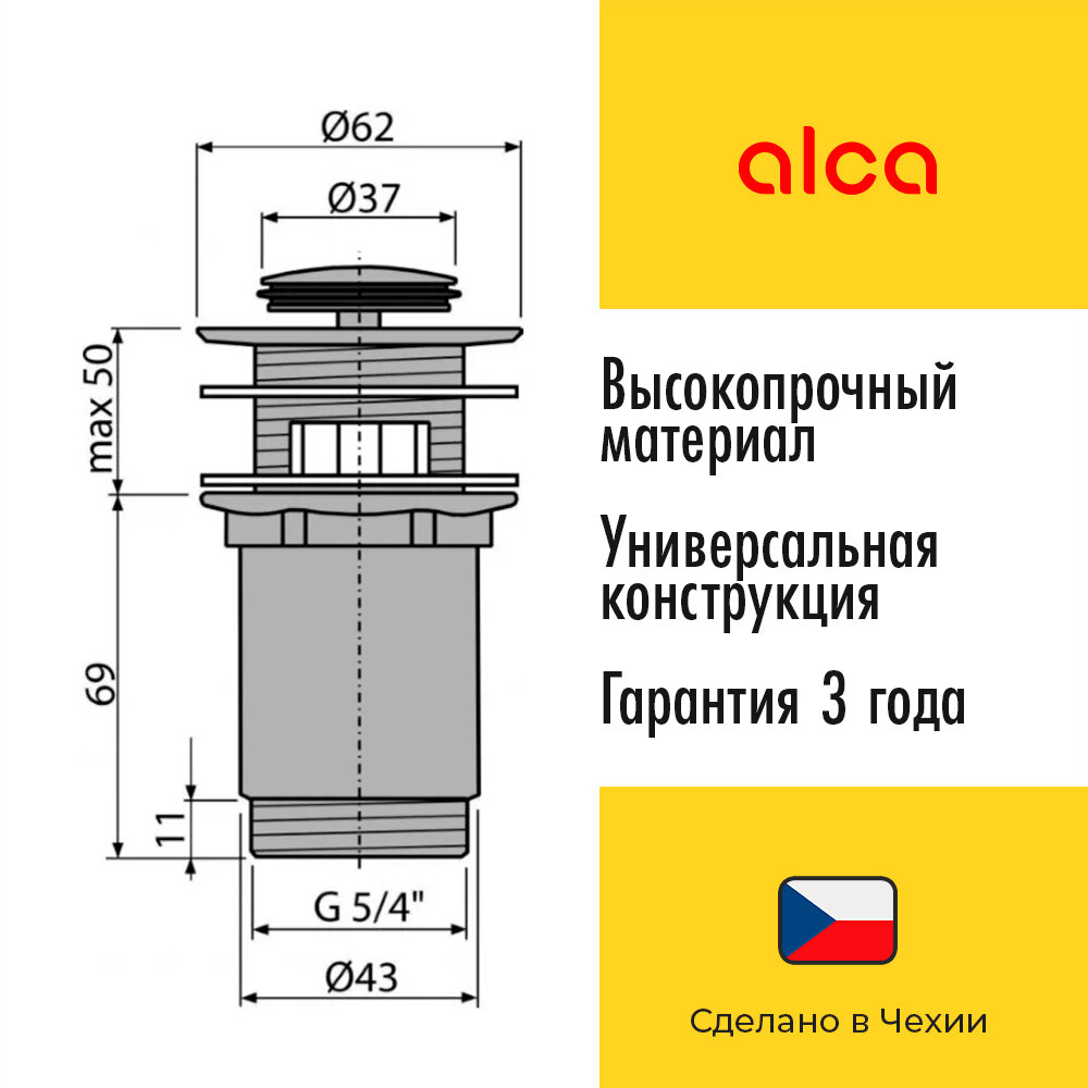 Отзывы на Водослив д/умывал. CLICK-CLAK 5/4“ цельнометал, с большой заглушк. (для пласт. и стекл. ум-ков)