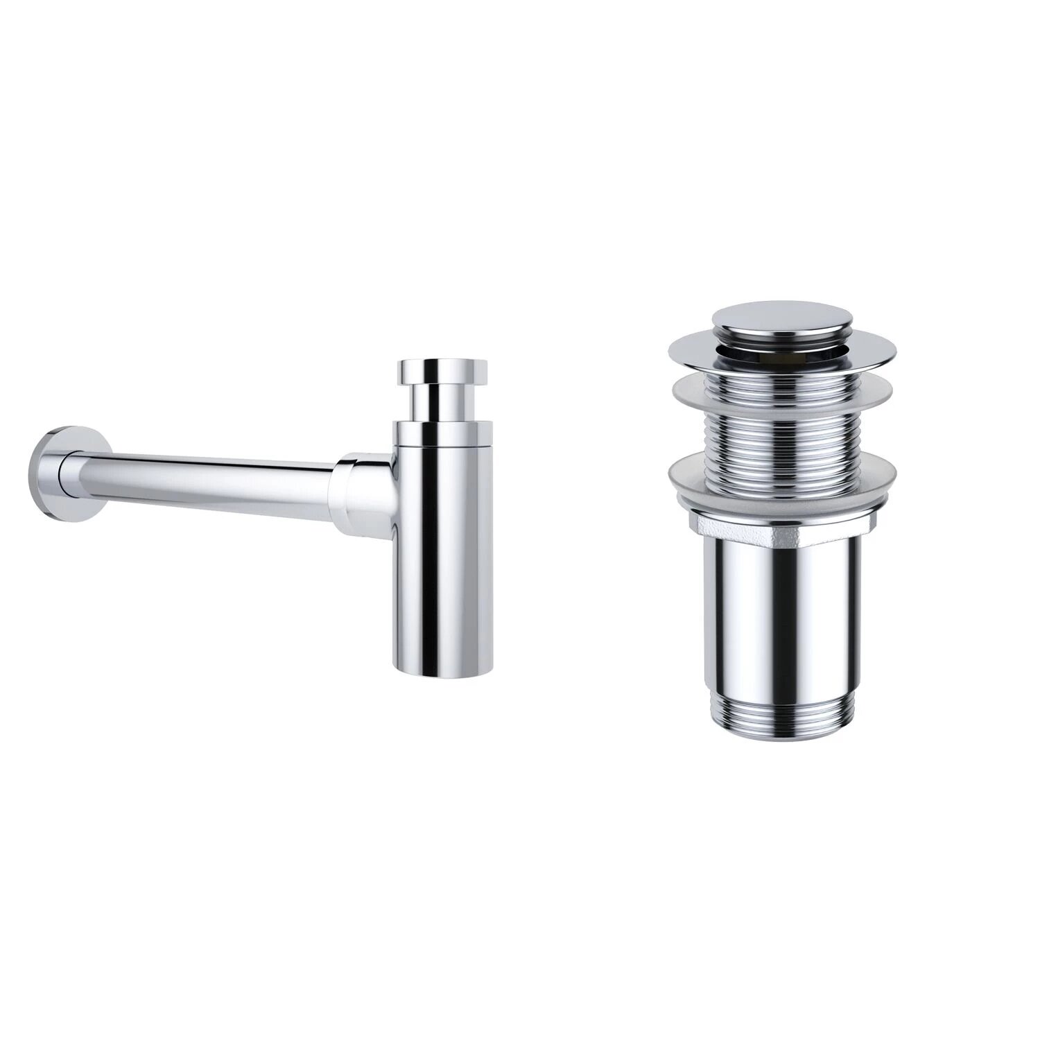 Сифон для раковины Wellsee Drainage System 182124001 в наборе 2 в 1: металлический сифон и донный клапан с переливом в цвете хром