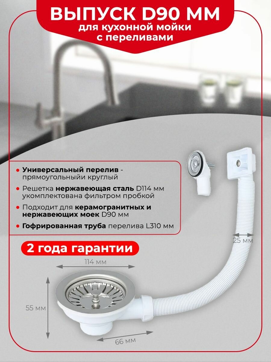 Выпуск для мойки WIRQUIN D90 мм c универсальным переливом нержавеющая чашка D114 мм пробка фильтр информация: