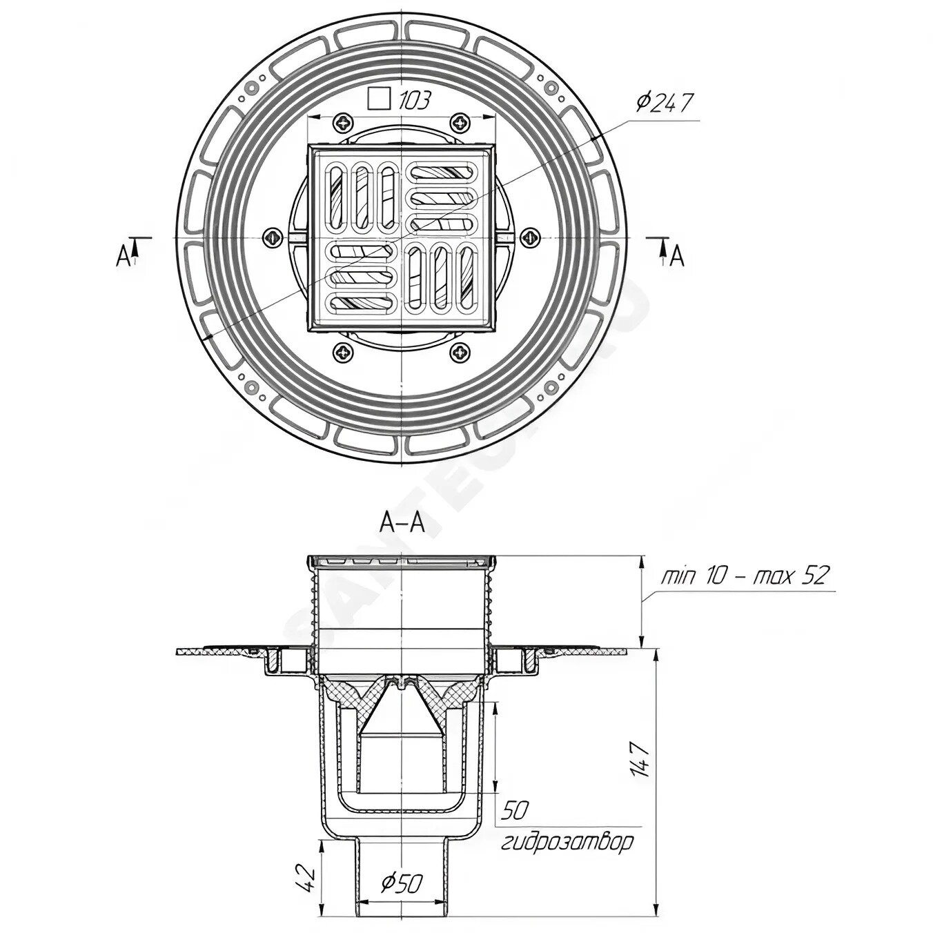 Трап АНИ Пласт THZ5702, регулируемый, с гидрозатвором и механическим сухим затвором информация: