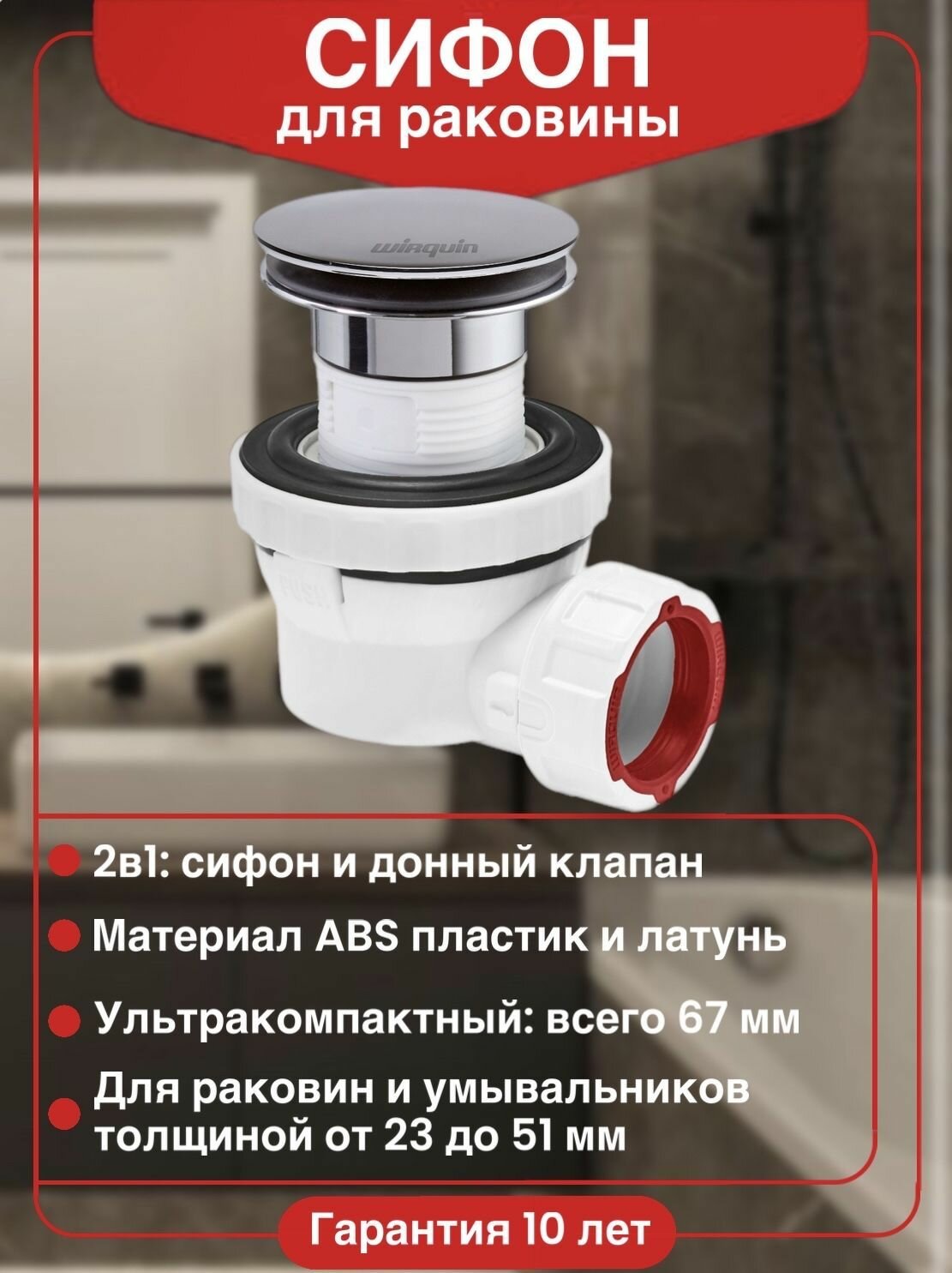 Отзывы на Сифон для раковины NANO 6.7 WIRQUIN с возможностью прочистки сверху сухой затвор выход 32 мм