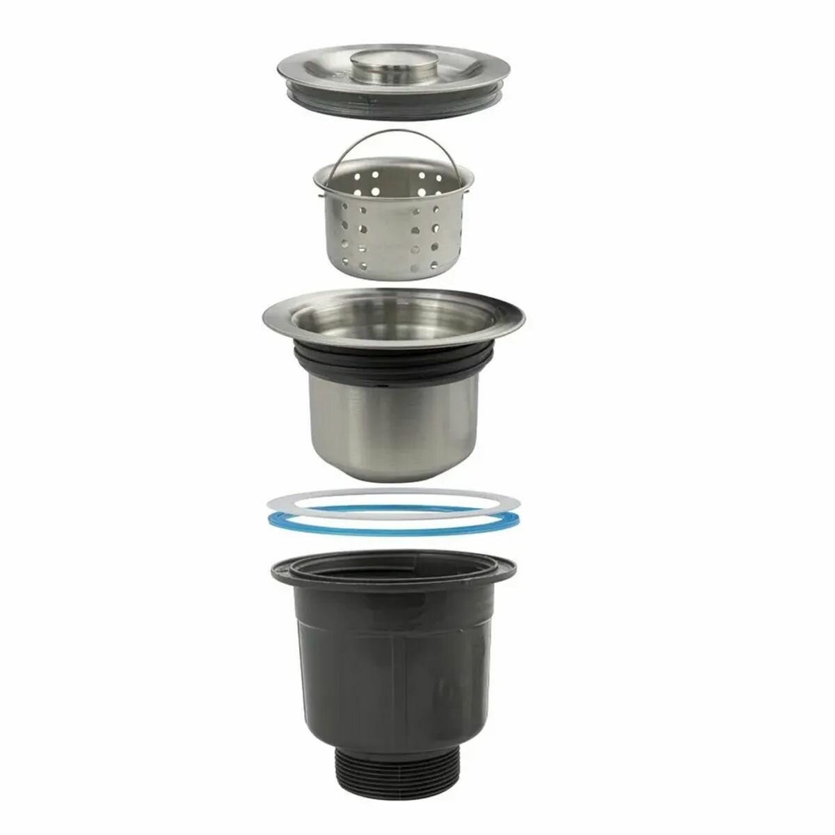 Сифон для мойки большая горловина с переливом, с отводом под сливной шланг и со съёмной корзинкой для мусора