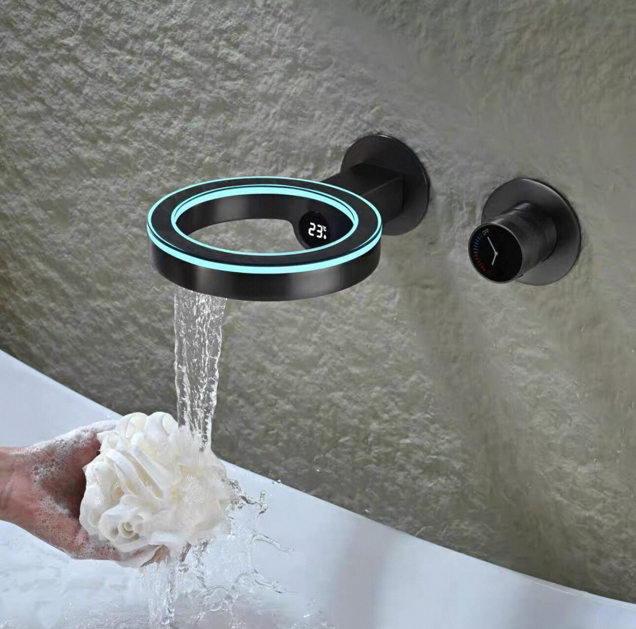 Отзывы на Смеситель встраиваемый в стену для раковины с датчиком температуры и подсветкой серый/черный