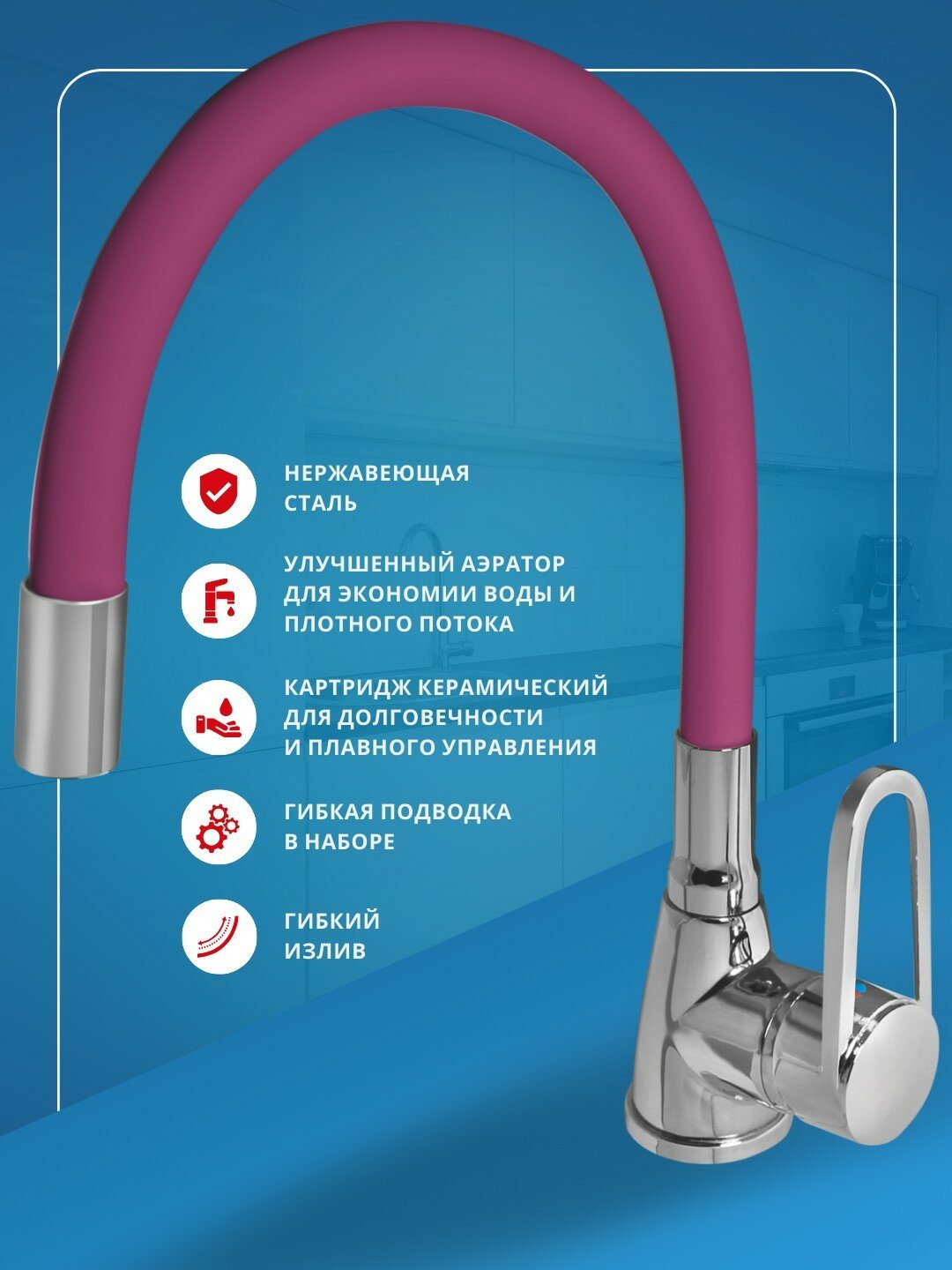 Смеситель для кухни, гибкий излив, цвет фиолетовый информация: