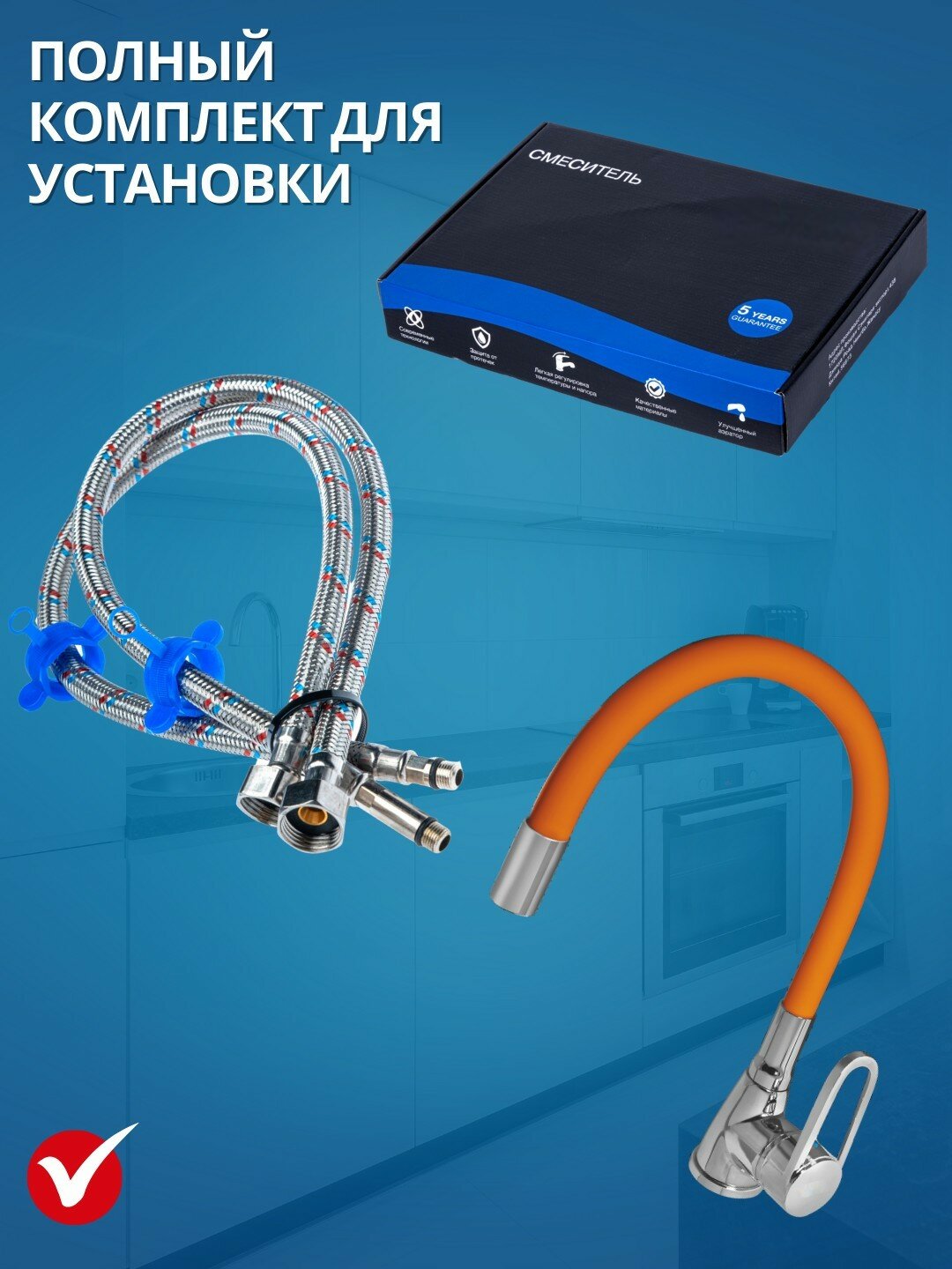 10 цен на Смеситель для кухни, гибкий излив, цвет оранжевый