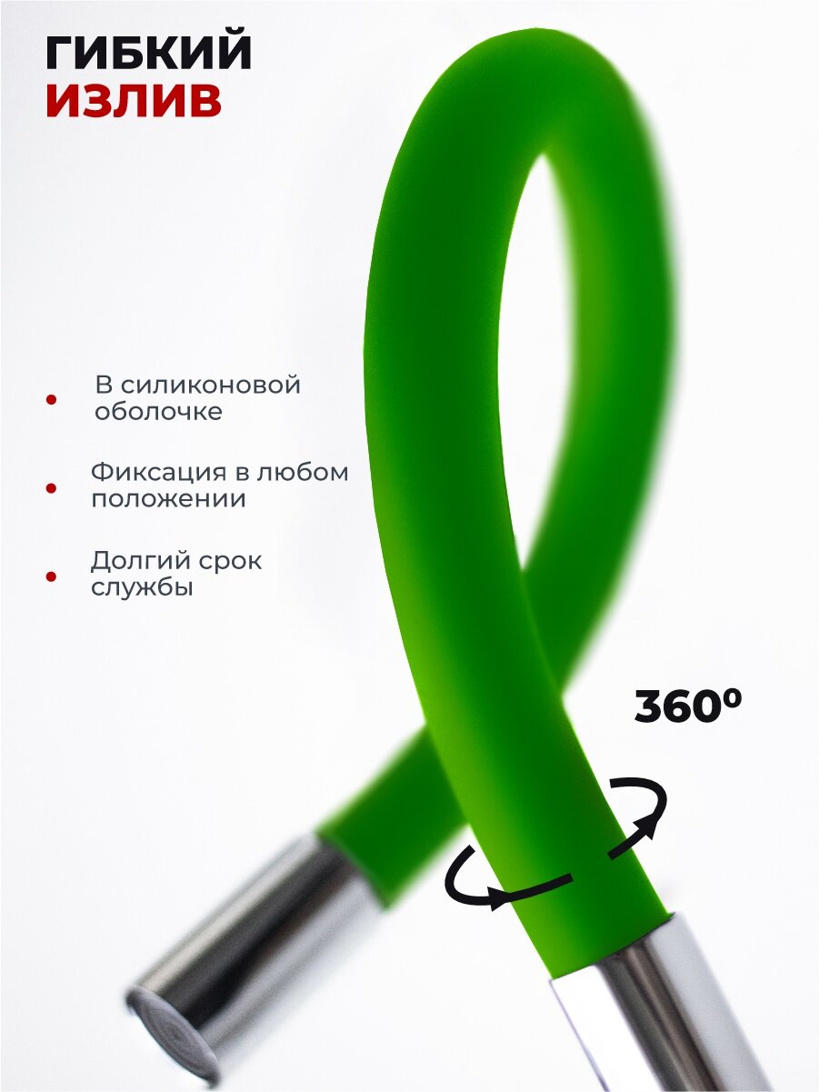 Смеситель для кухни, гибкий излив, цвет зеленый информация: