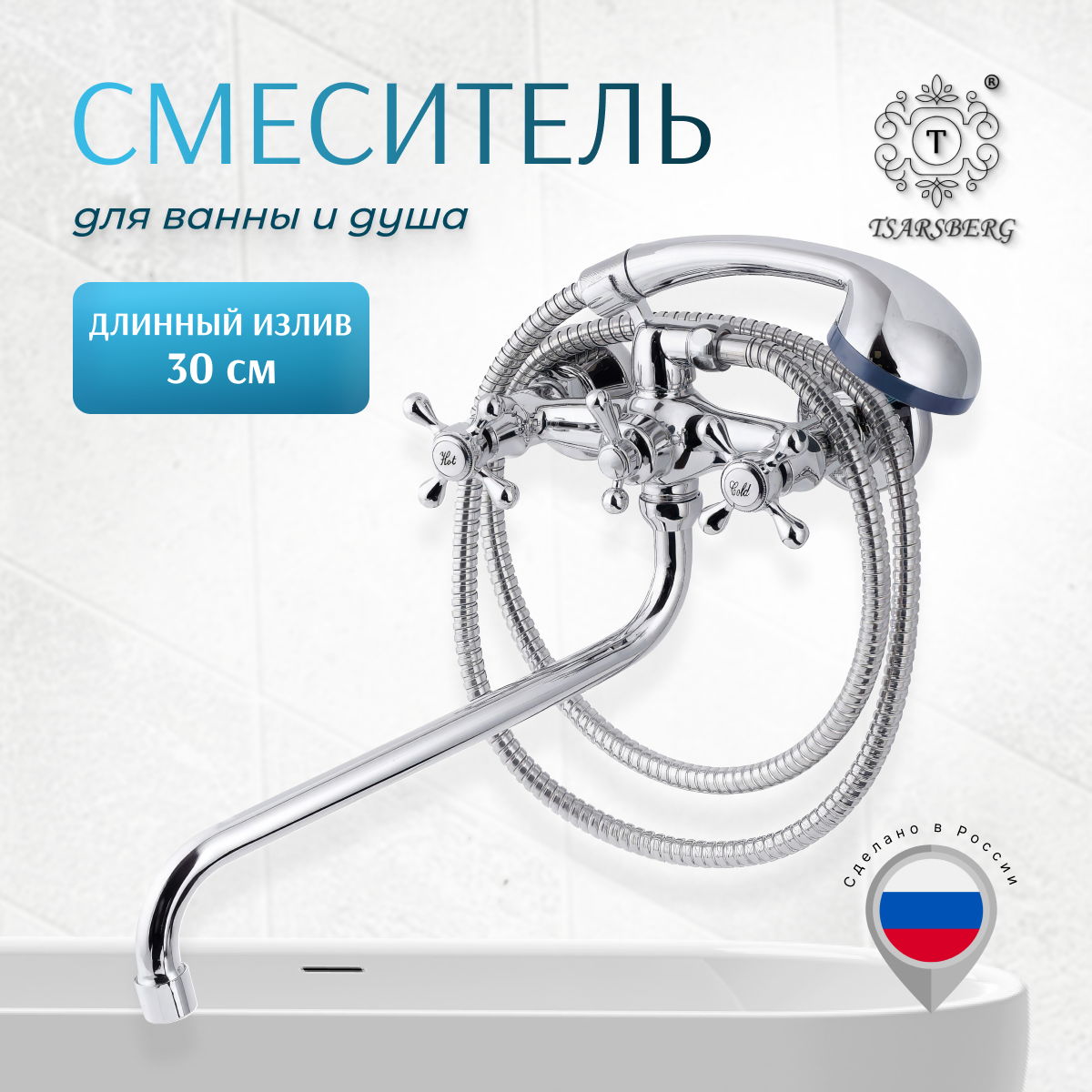 10 цен на Смеситель для ванны с душем TSB-111-95, поворотный длинный излив, длина 30 см, хром