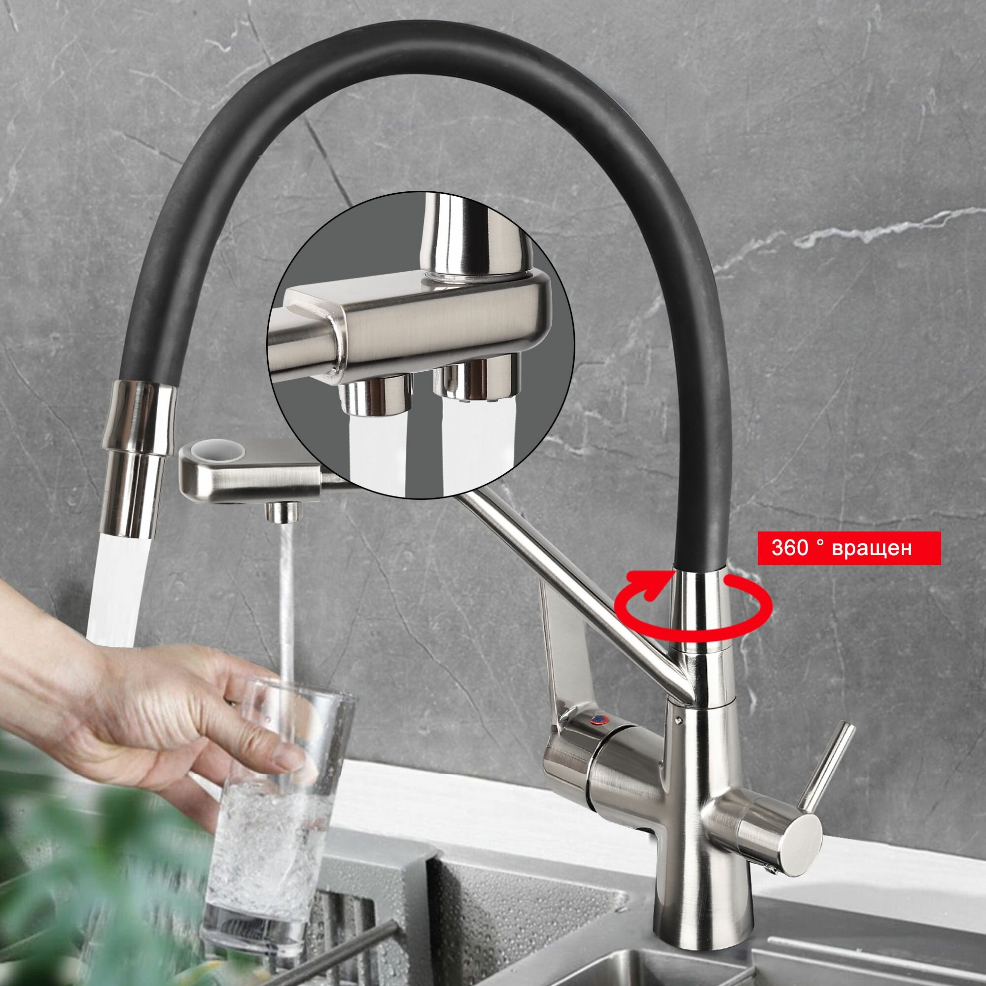 Отзывы на Смеситель для кухни, с фильтром для питьевой воды, кран для кухни, с гибким изливом, ванны, раковины в ванную, 2 в 1, хромированный и черный