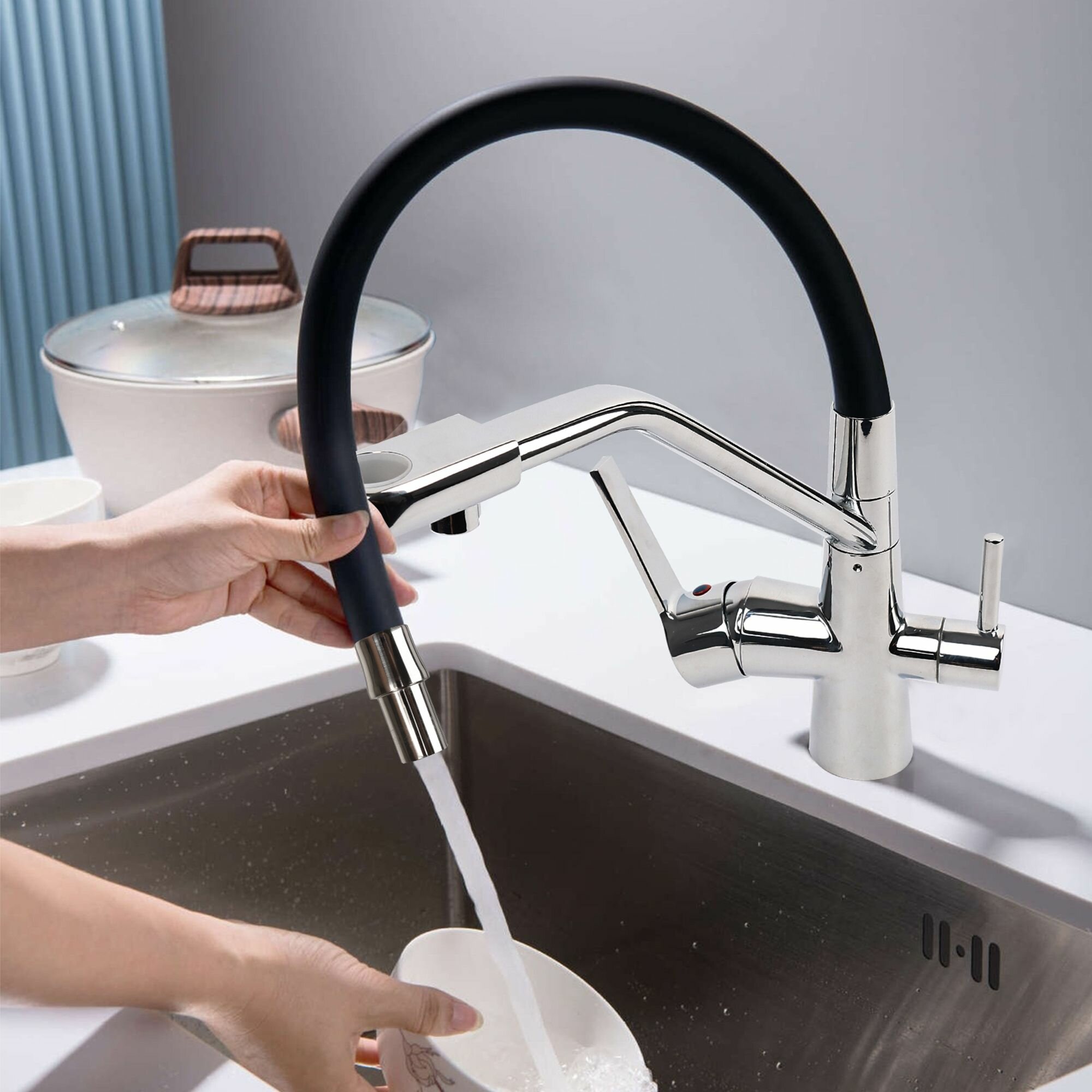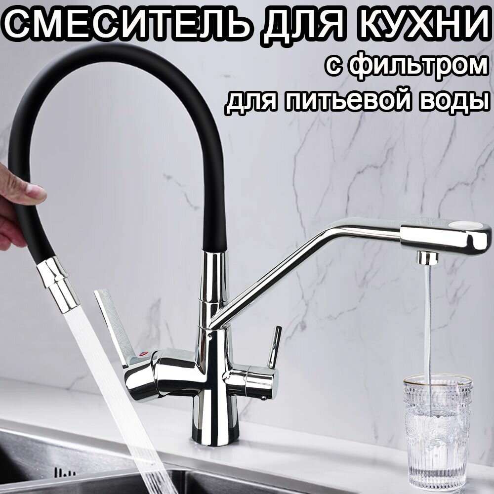 Смеситель для кухни, с фильтром для питьевой воды, кран для кухни, с гибким изливом, ванны, раковины в ванную, 2 в 1, хромированный и черный 6 477 ₽