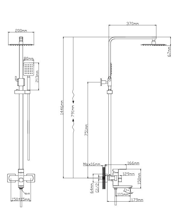 Душевая система с тропическим душем и коротким изливом черная нержавеющая сталь информация: