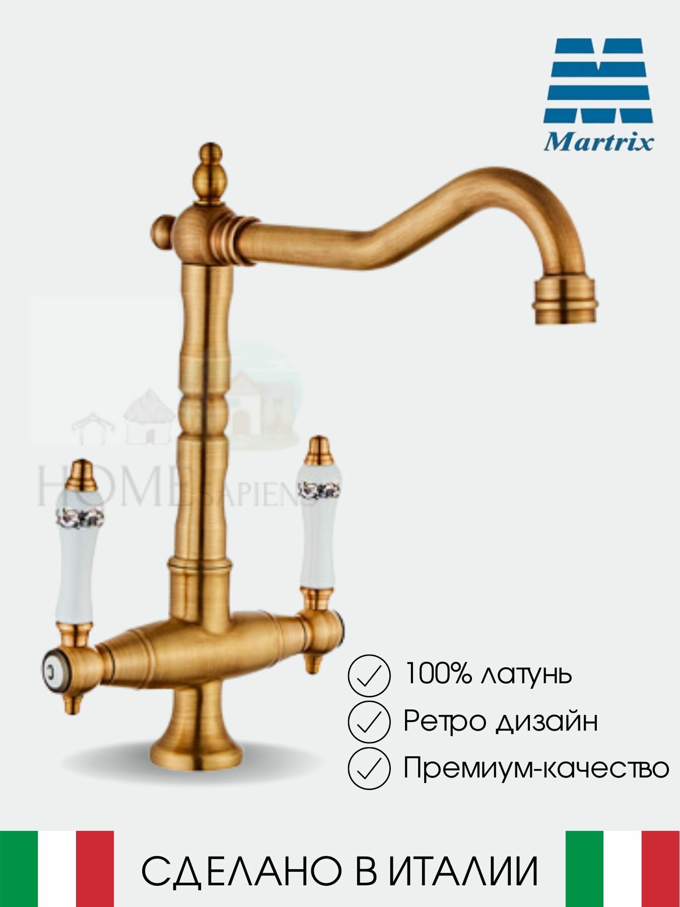 Смеситель для кухни MATRIX (бронза) ретро (кухонный) итальянский информация: