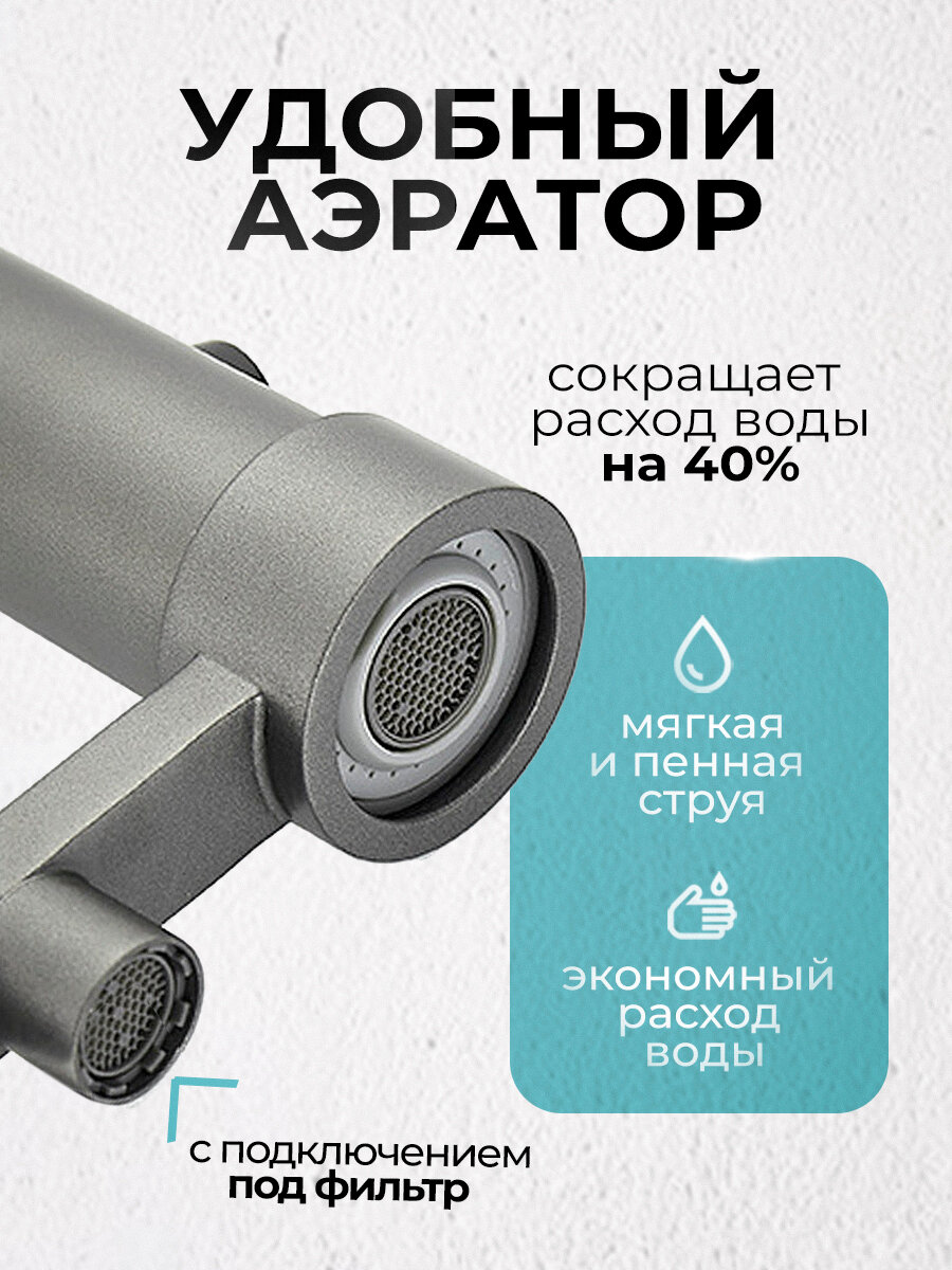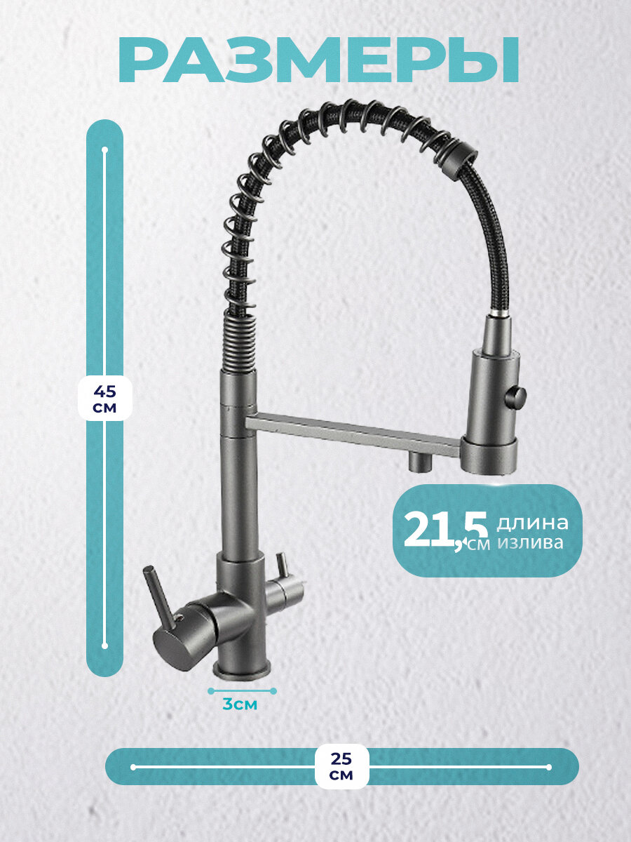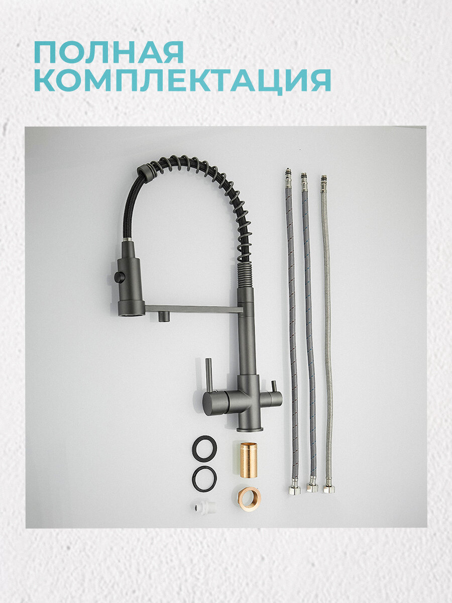 Смеситель для кухни с фильтром Profusion Gun Grey оружейная сталь, черный, кран для раковины с гибким изливом информация: