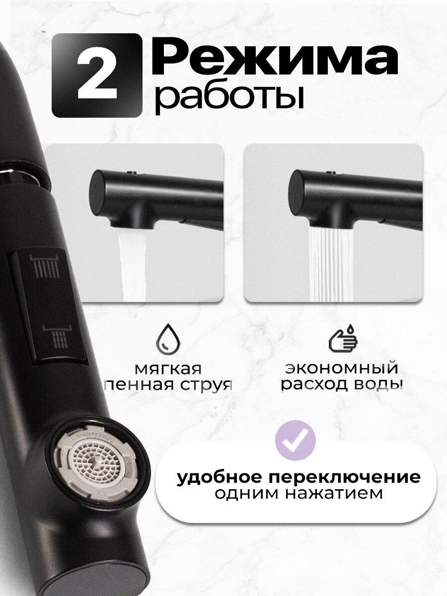 Смеситель для кухни с фильтром Profusion Black черный матовый, кран для раковины с гибким изливом 4 639 ₽