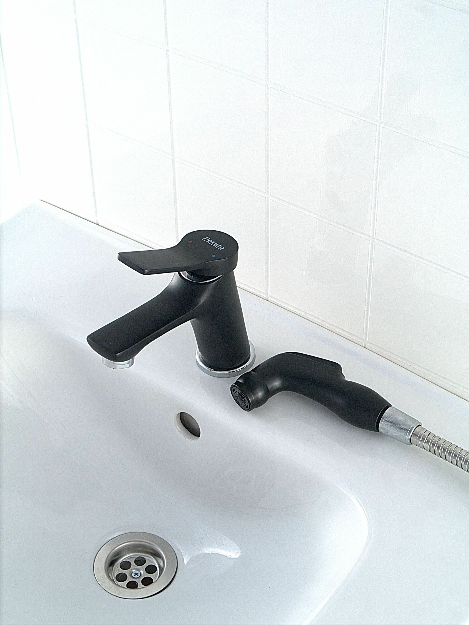 Отзывы на Смеситель для раковины с гигиеническим душем Potato P12292BL смеситель с гигиенической лейкой, черный