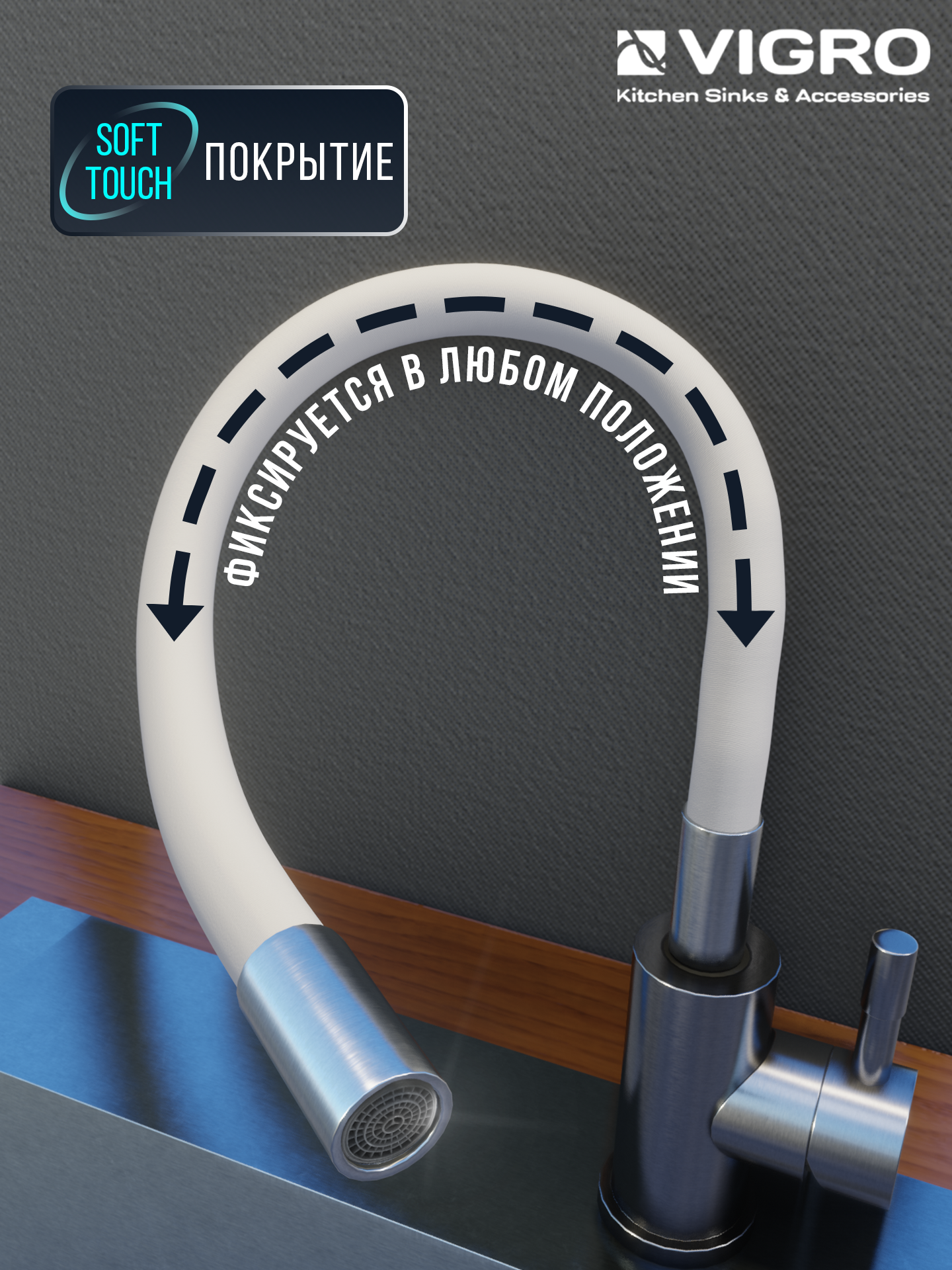 Смеситель для кухни с гибким изливом Vigro VG4263-5.8 Белый/сатин информация: