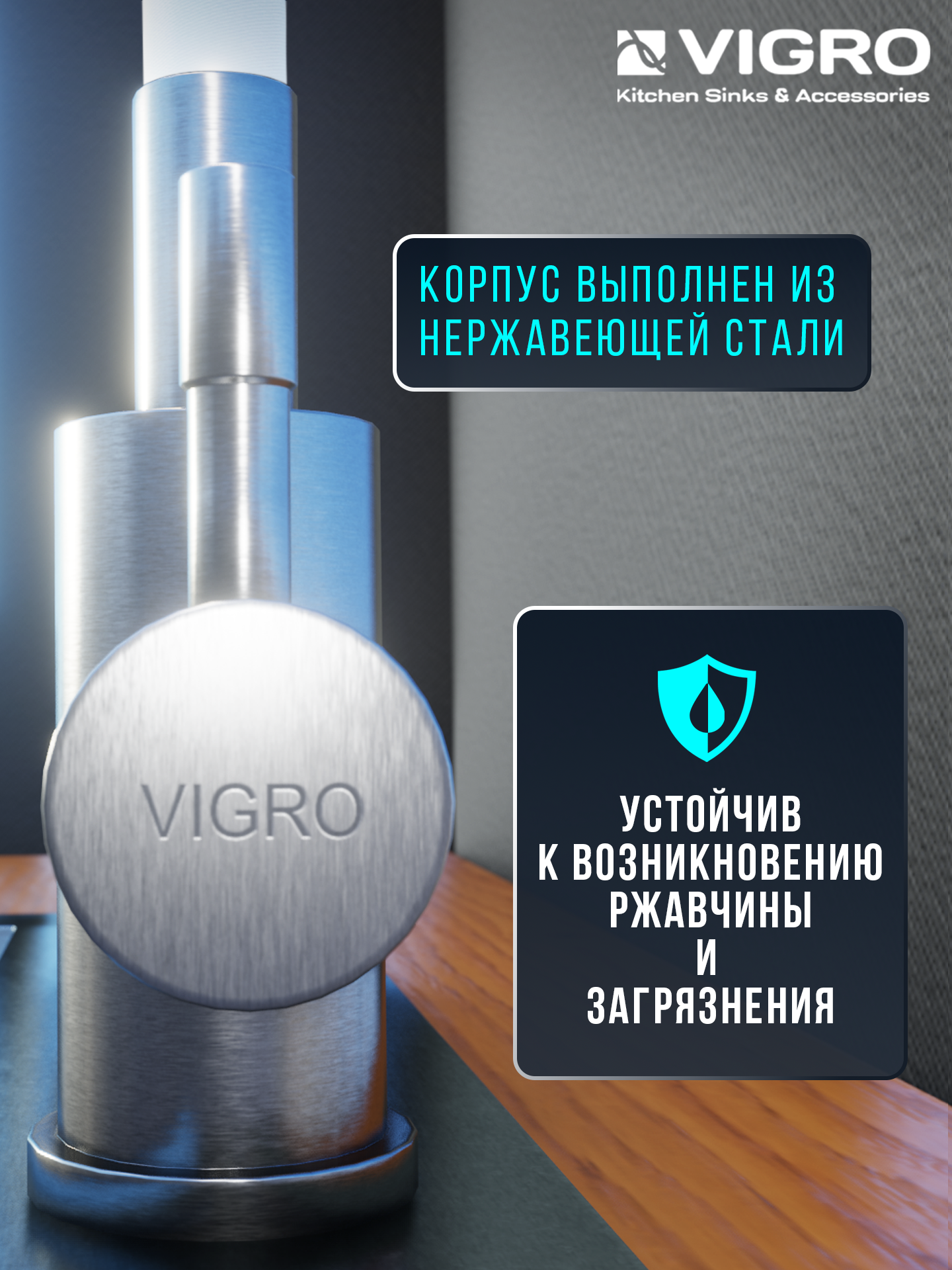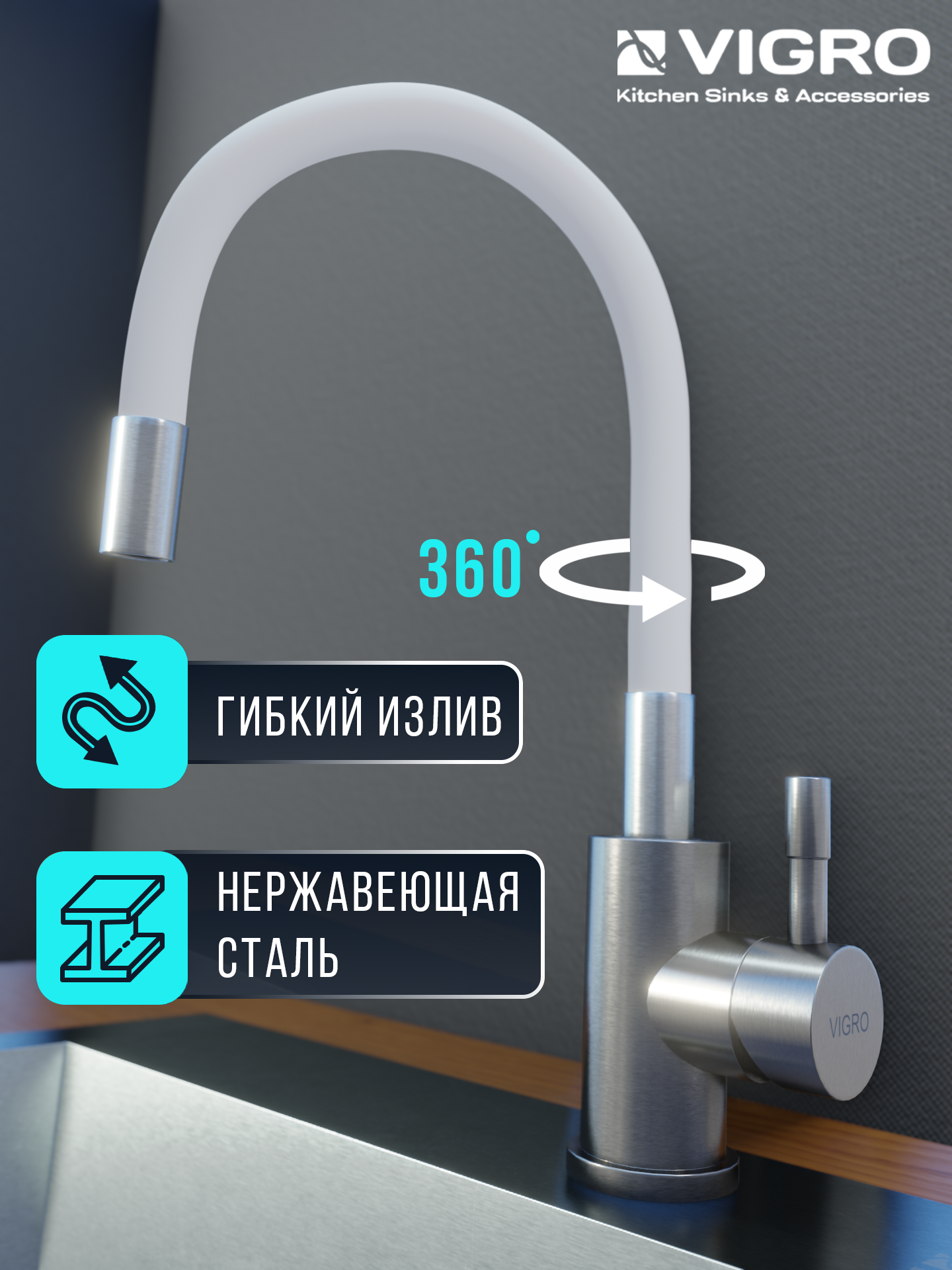 Отзывы на Смеситель для кухни с гибким изливом Vigro VG4263-5.8 Белый/сатин