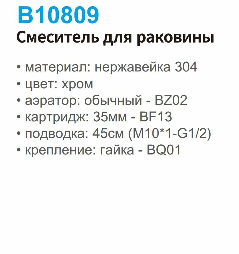 Смеситель для раковины BELZ B10809, цвет-хром, материал- нержавеющая сталь информация: