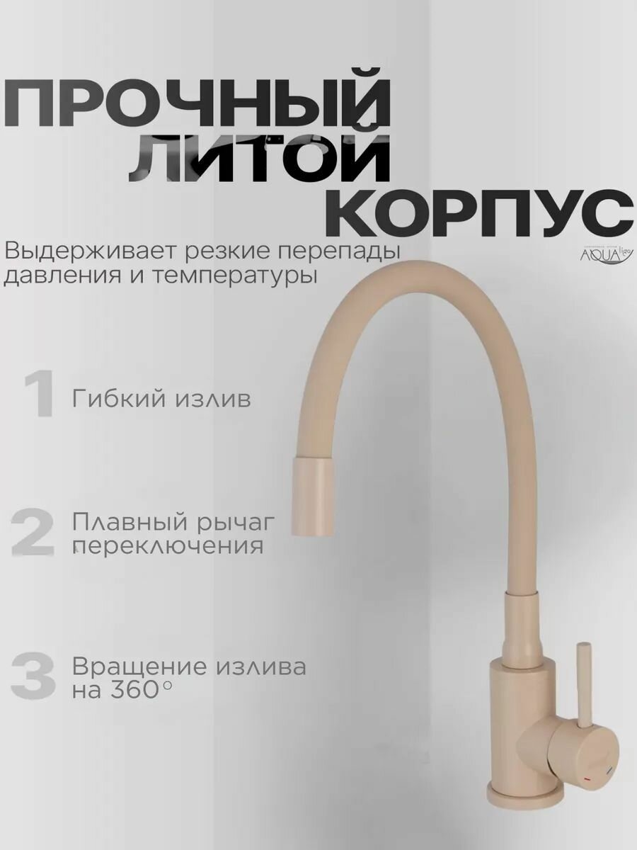 Смеситель для кухни c гибким изливом бежевый, высокий, поворотный, нержавеющая сталь информация:
