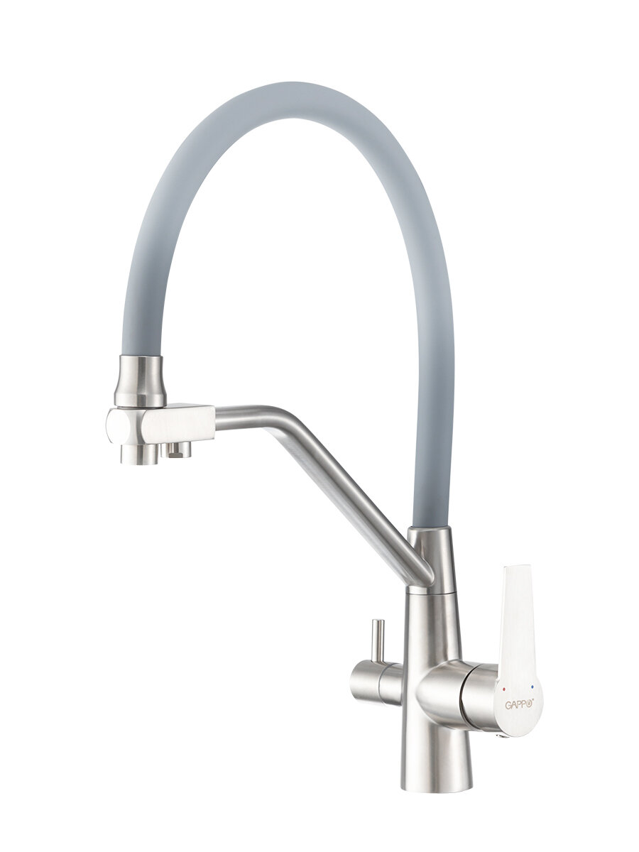 Смеситель для кухни с подключением фильтра питьевой воды Gappo Y400021 сатин/серый информация: