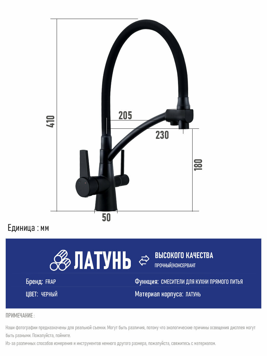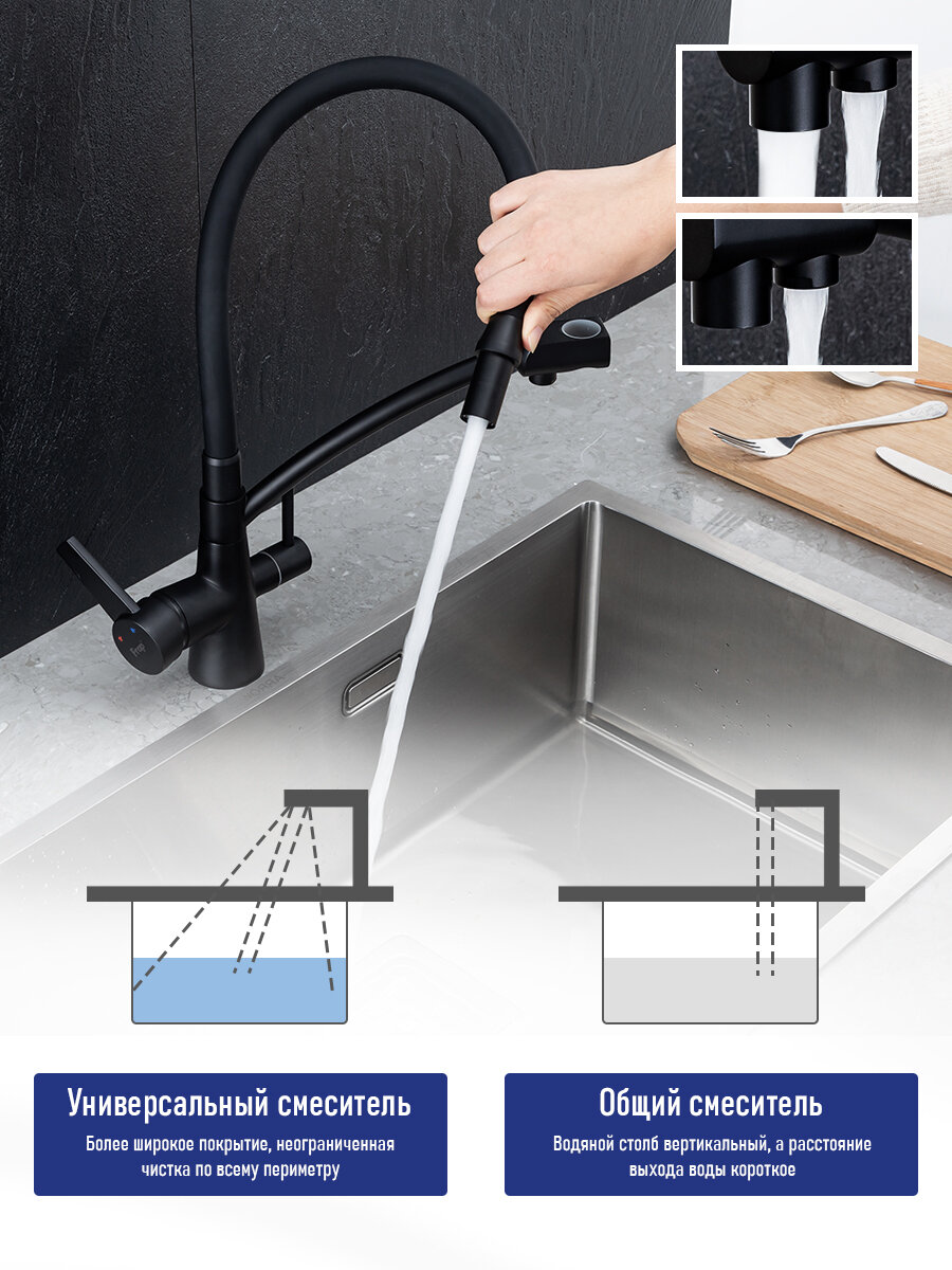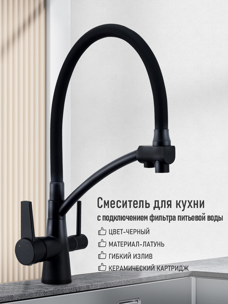 Смеситель для кухни со встроенным фильтром кран для кухни раковины с фильтром Frap черный информация:
