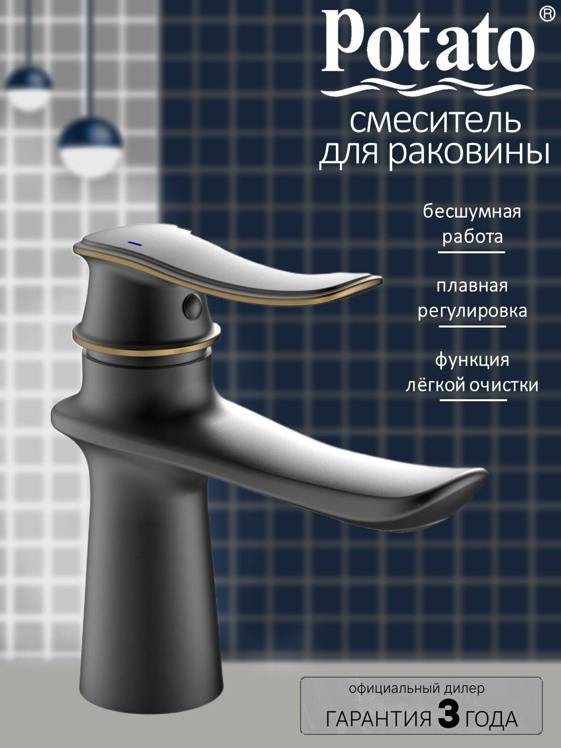 Смеситель для раковины Potato P10139HG умывальника, кран для раковины в ванную, черная бронза информация: