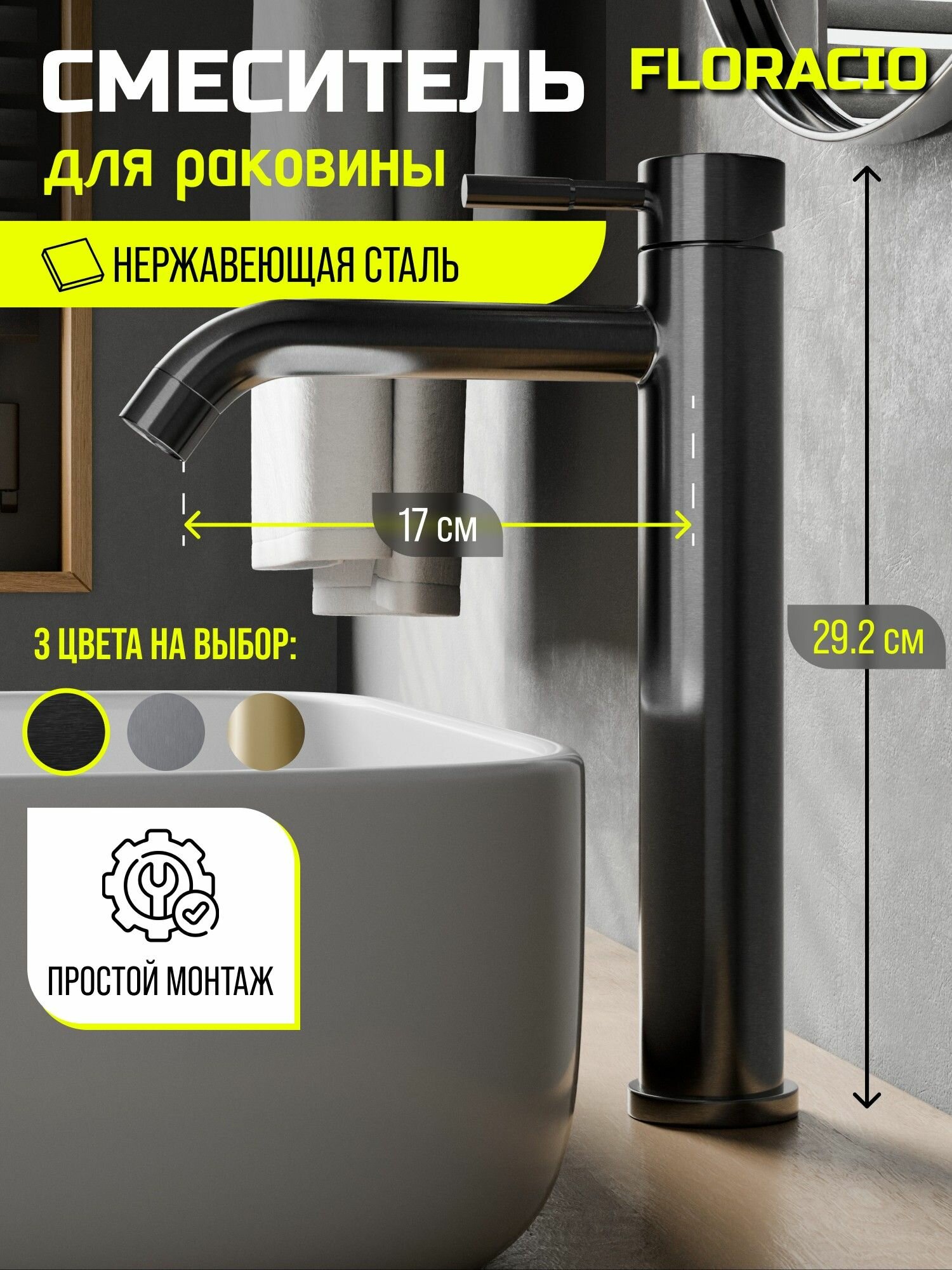 Отзывы на Смеситель для раковины-чаши Floracio Tube F.911. GM, вороненая сталь