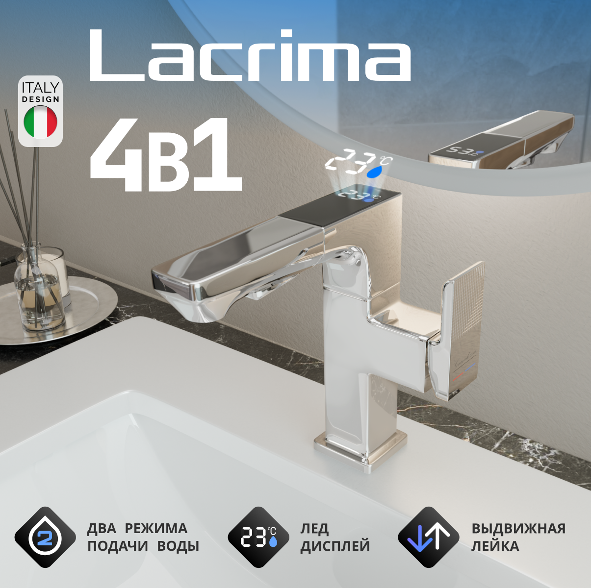 Отзывы на Смеситель для ванной с телескопической лейкой Grandezza Lacrima Chrome LC23 Led дисплеем и выдвижной лейкой (Хром)