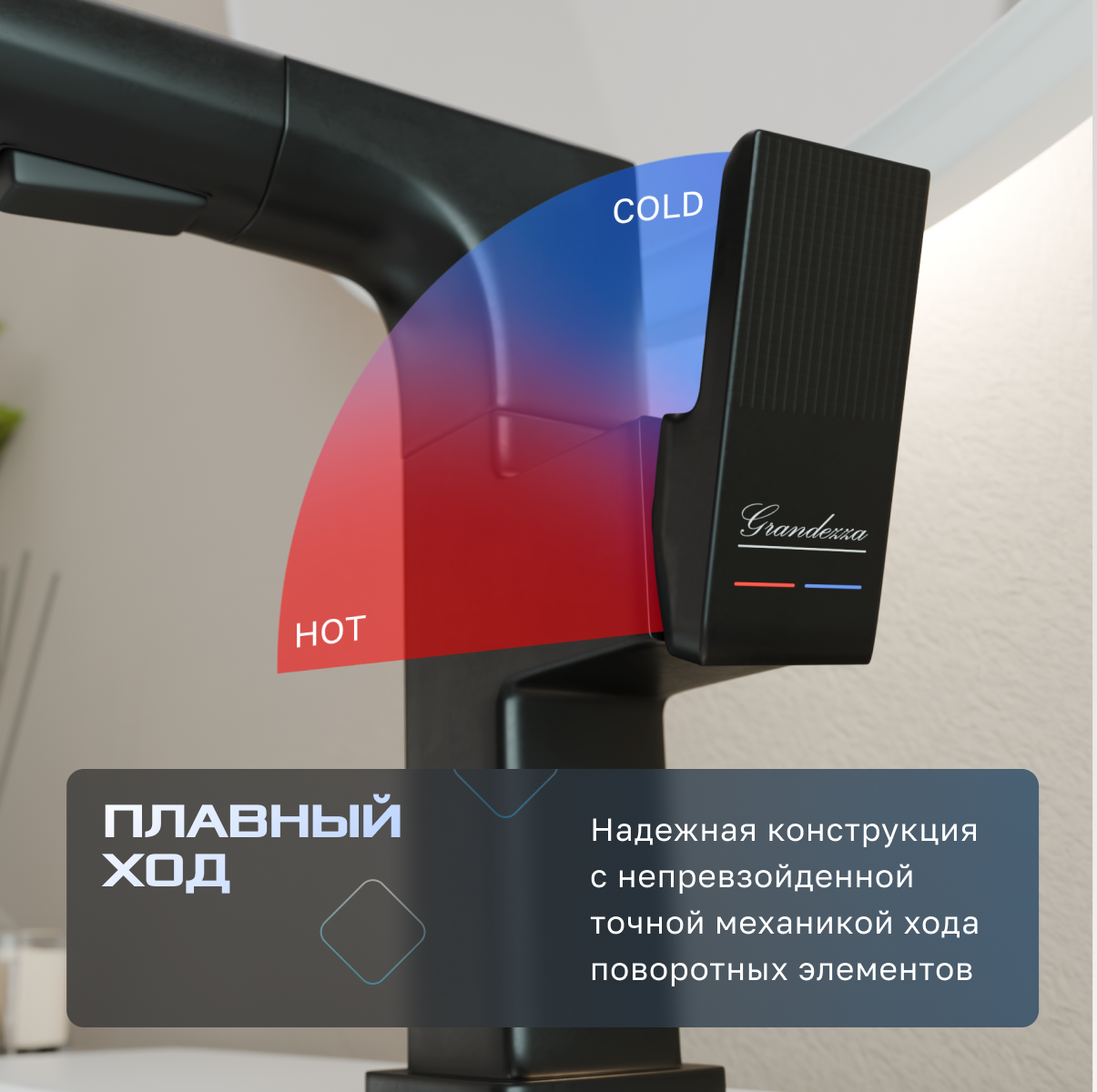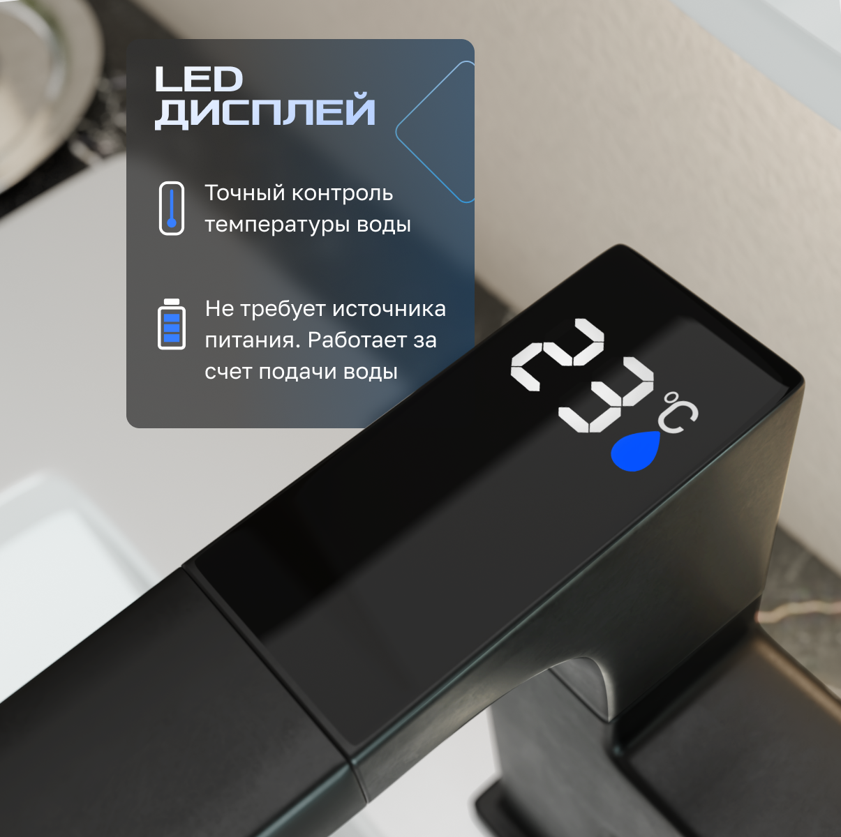 Смеситель для ванной с телескопической лейкой Grandezza Lacrima Black LB23 Led дисплеем и выдвижной лейкой (Черный) информация:
