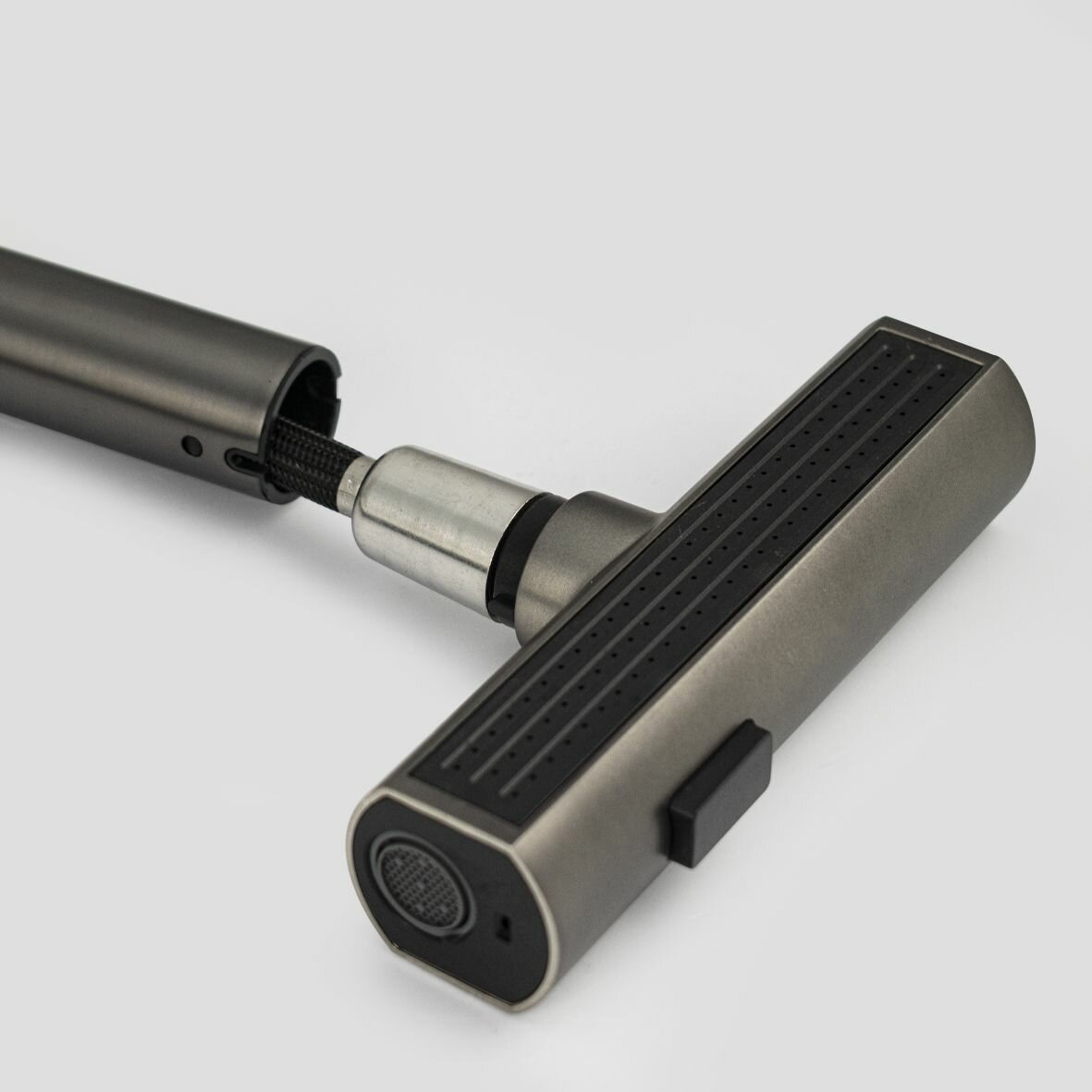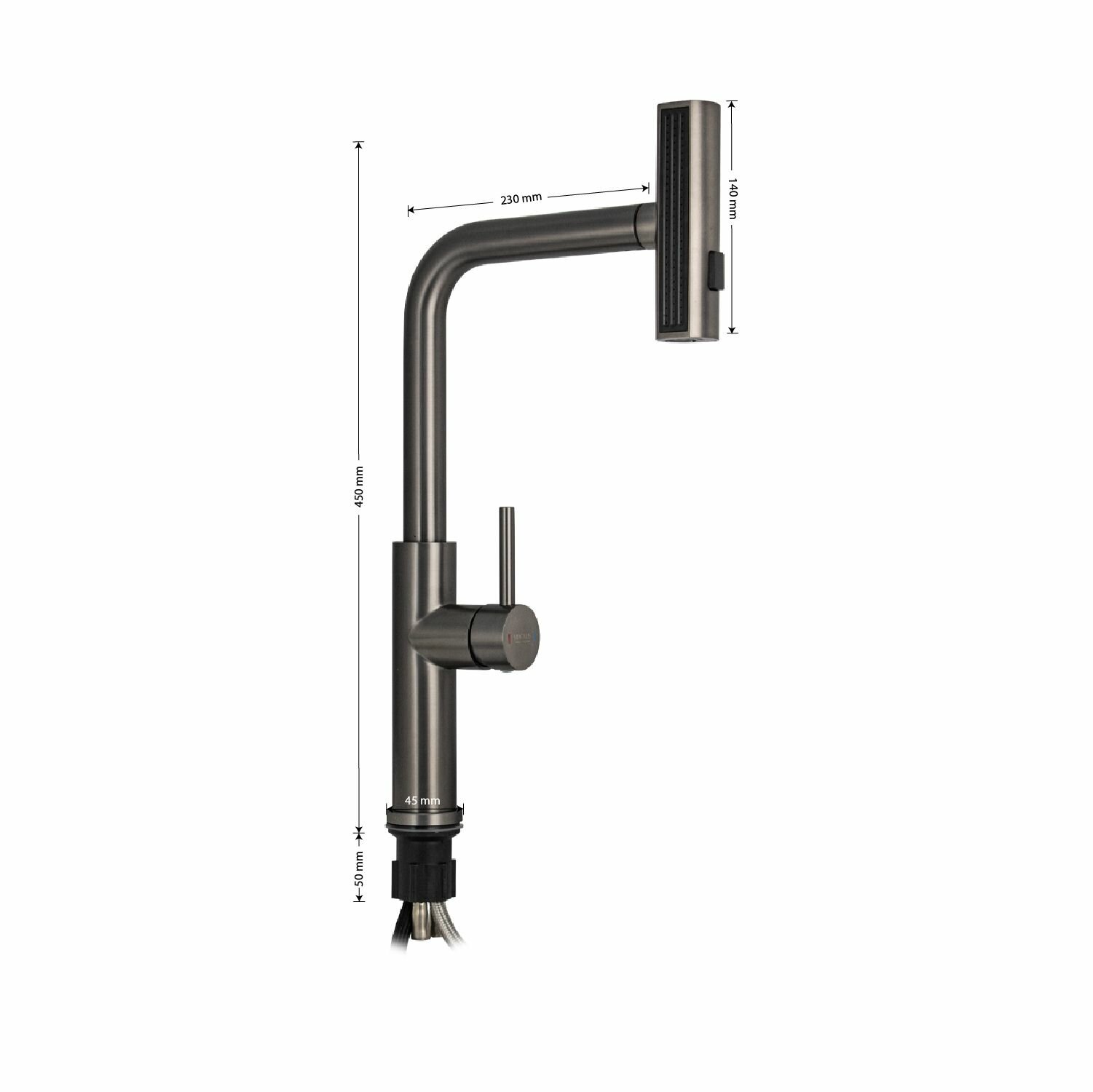 Смеситель кухонный, шаровый, Г - образный излив, с поворотной вытяжной лейкой, из нержавеющей стали, цвет графит информация: