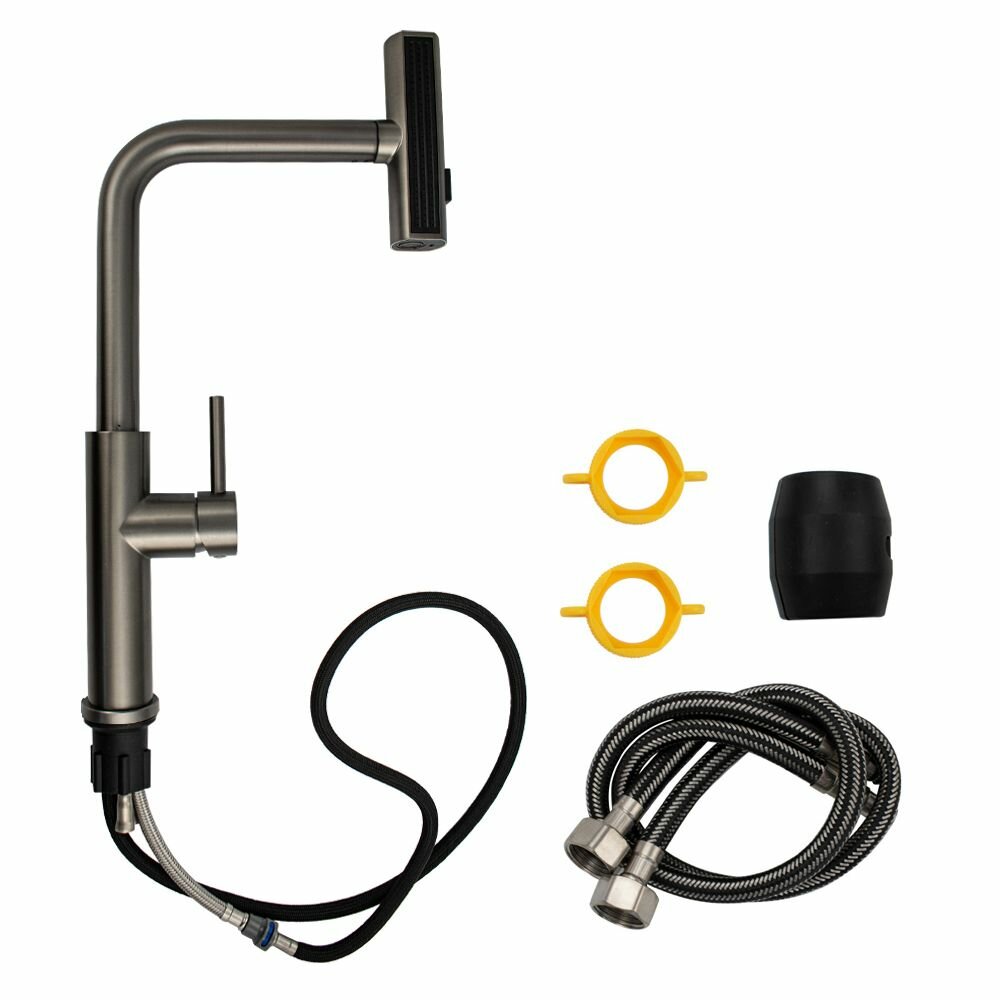 Отзывы на Смеситель кухонный, шаровый, Г - образный излив, с поворотной вытяжной лейкой, из нержавеющей стали, цвет графит