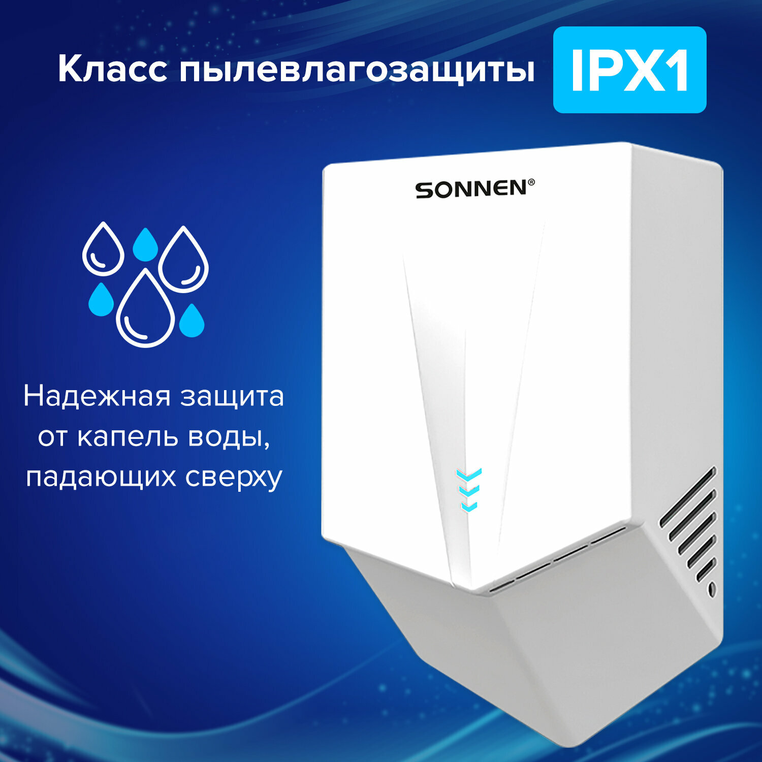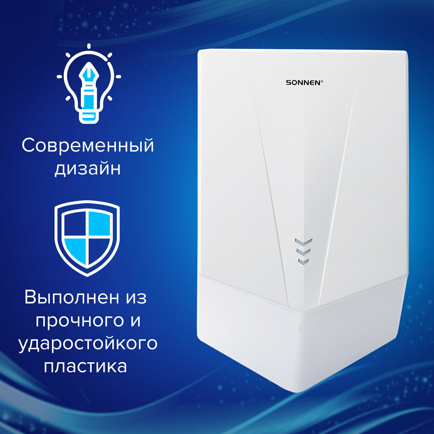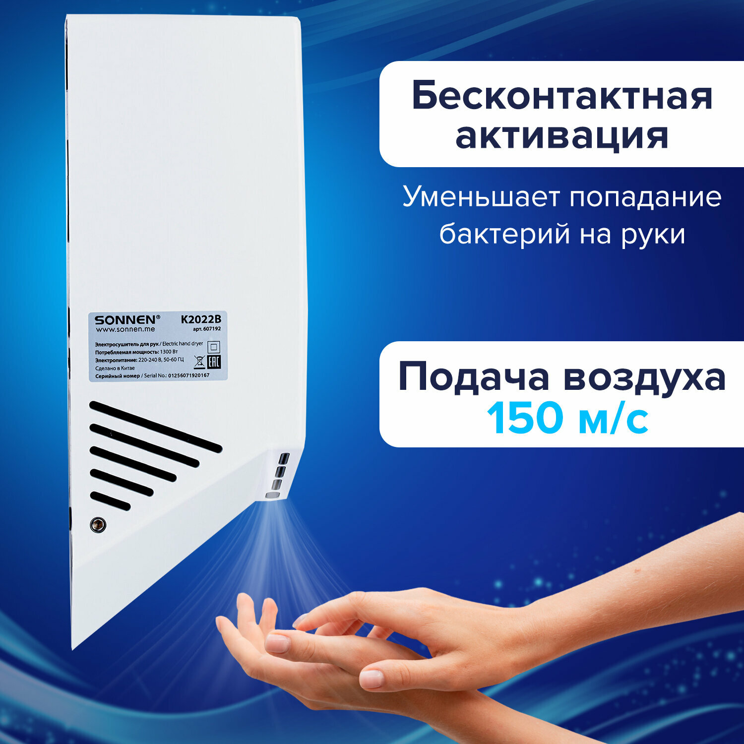 Сушилка для рук электрическая сенсорная на стену, сушка высокоскоростная 150 м/с, 1300 Вт, пластиковый корпус, белая информация: