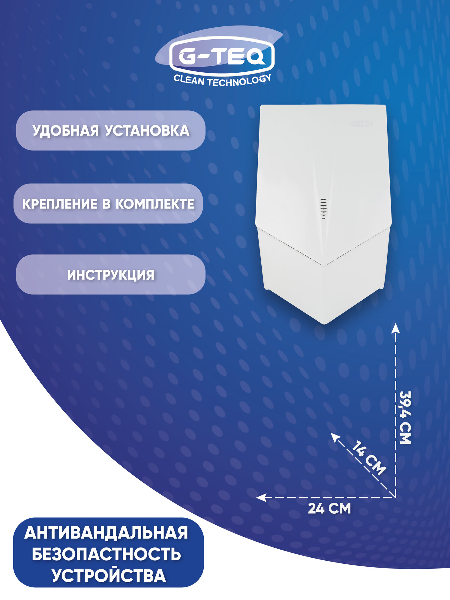 Скоростная сушилка для рук G-teq G-8860 PW информация: