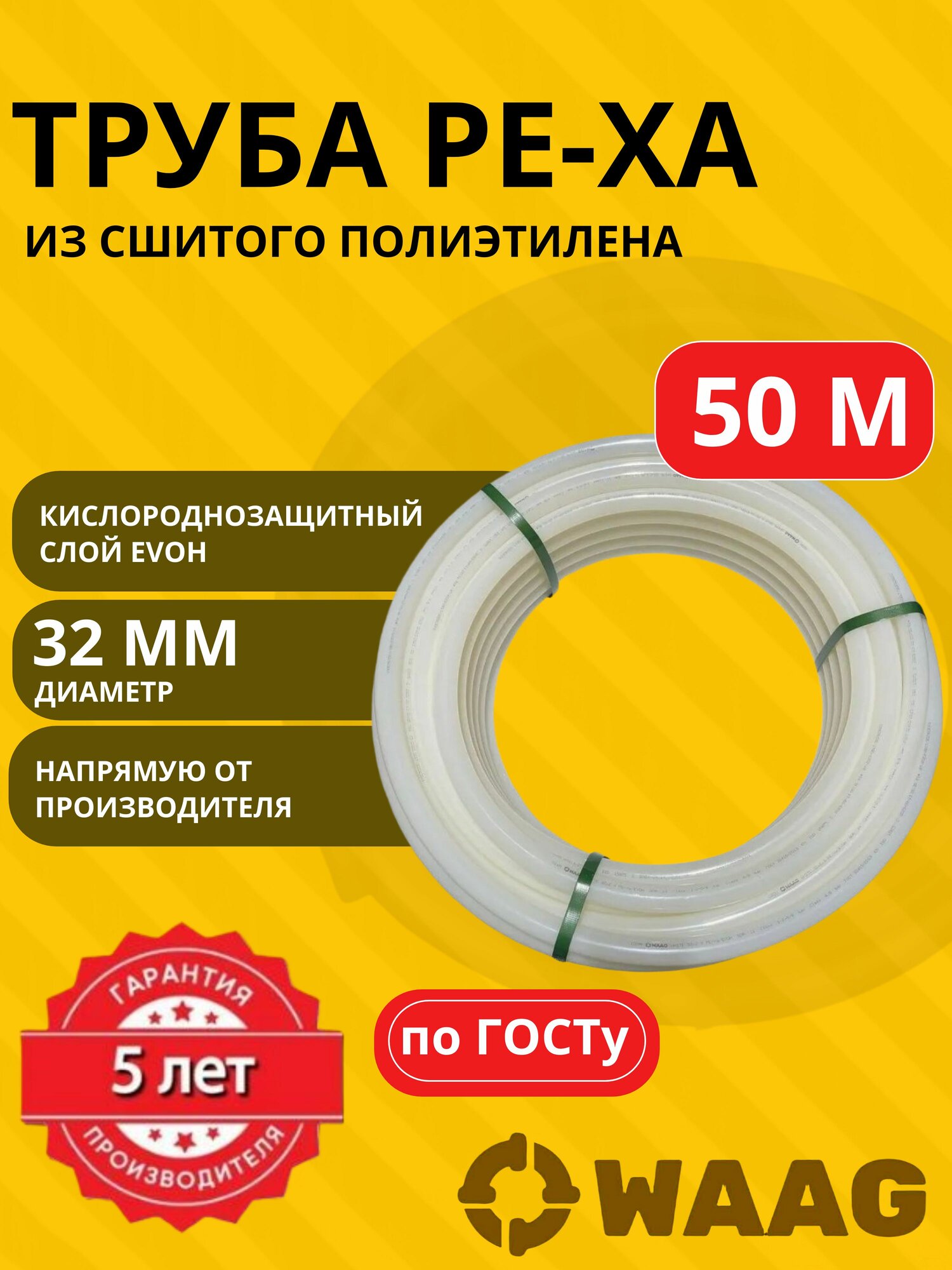 10 цен на Труба из сшитого полиэтилена универсальная WAAG White DN32 x 2,9, PN 6 (бухта 50м), PE-Xa / EVOH, прозрачная