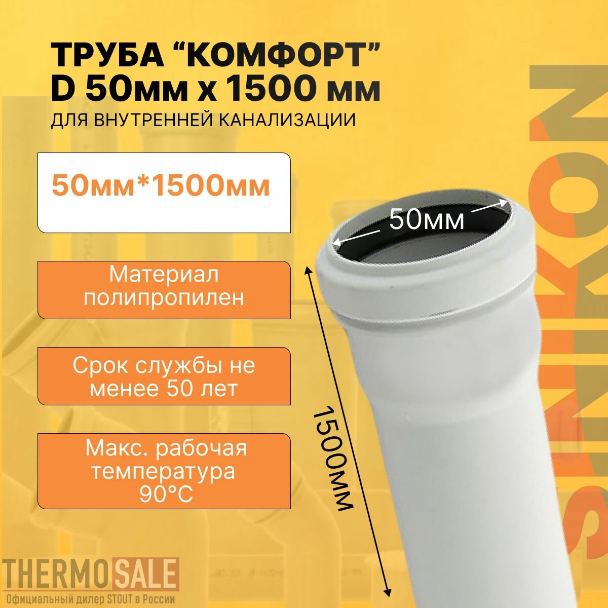 Труба канализационная 50 мм х 1500 мм комфорт плюс длина 1,5 м цвет белый Sinikon информация: