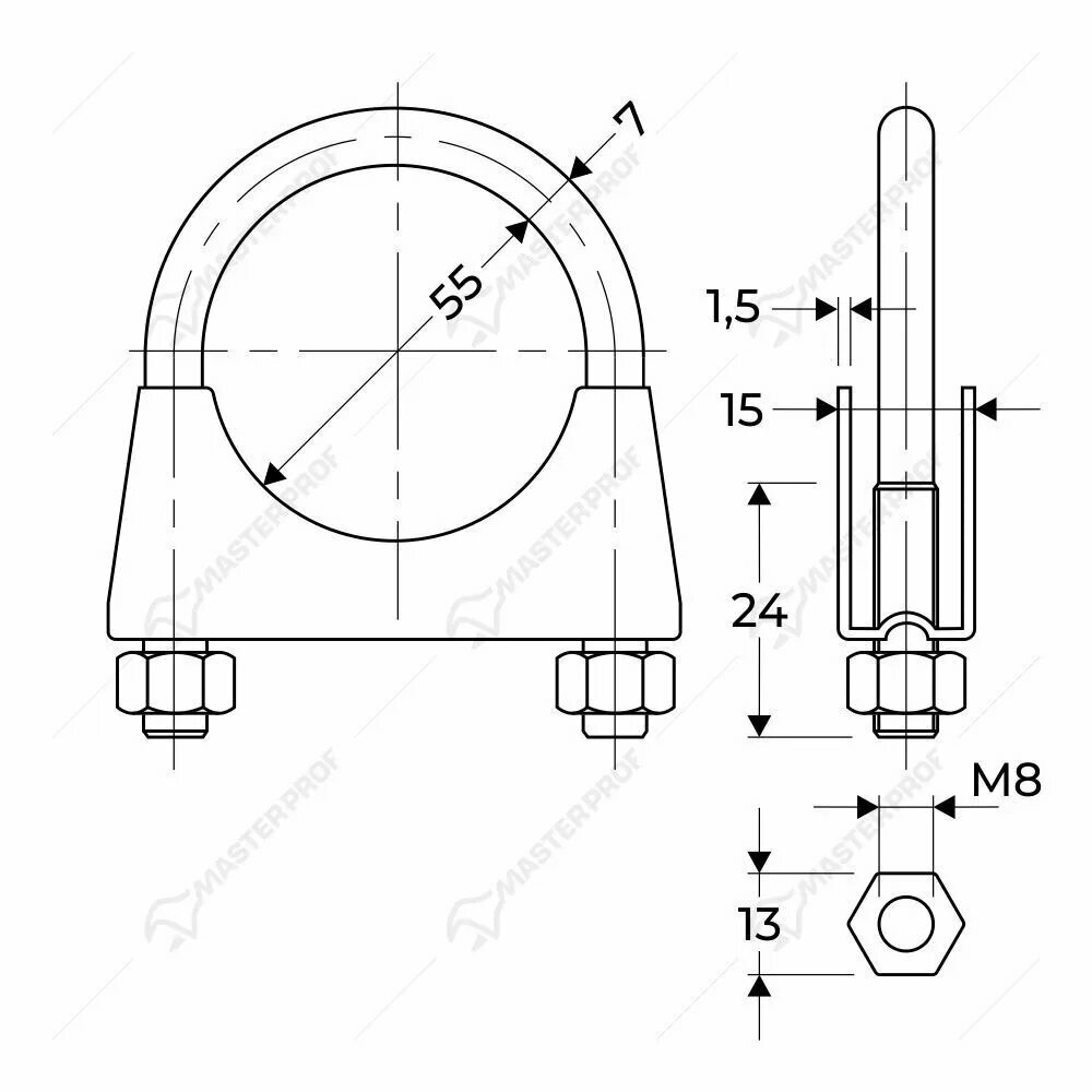 Хомут Стремянка M8 D55 2 шт. стальной оцинкованный для монтажа труб информация: