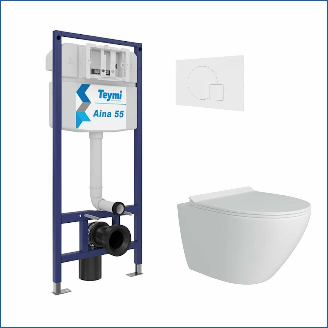 Инсталляция с унитазом комплект 5 в 1 Teymi унитаз подвесной безободковый Lina Pro кнопка нержавеющая сталь F13877 18 105 ₽