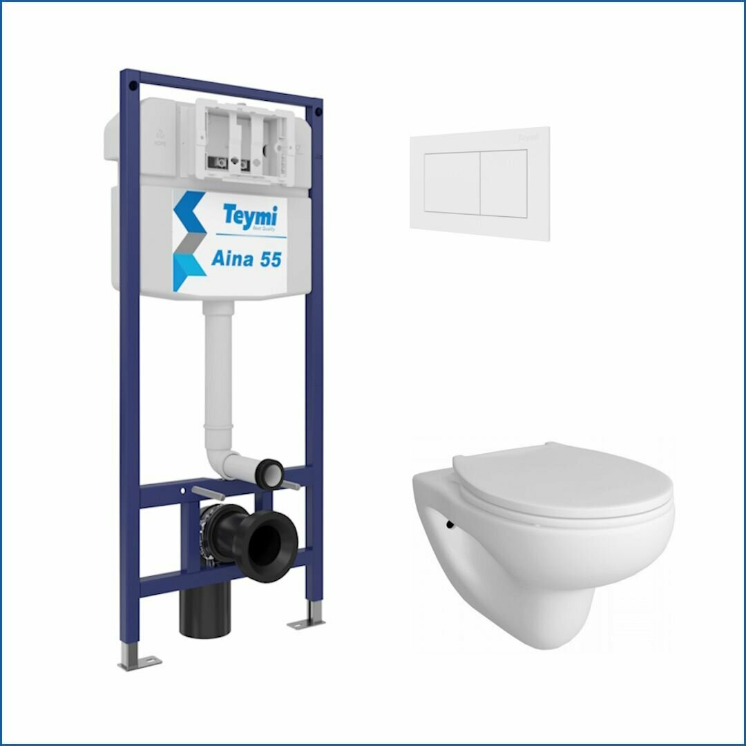 10 цен на Инсталляция с унитазом комплект 5 в 1 Teymi унитаз подвесной безободковый Hanna Pro кнопка белая F13718
