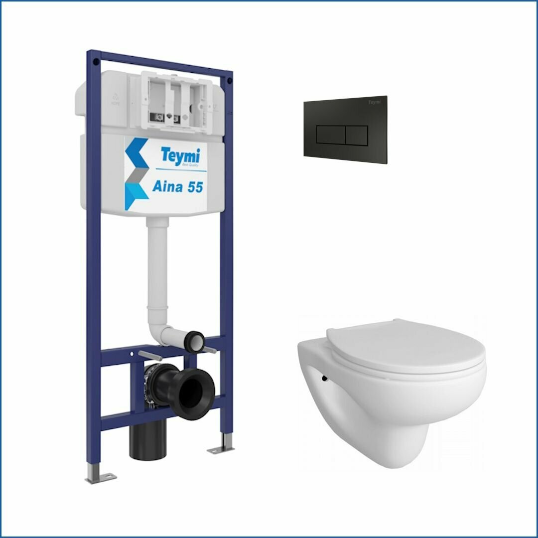 10 цен на Инсталляция с унитазом комплект 5 в 1 Teymi унитаз подвесной безободковый Hanna Pro кнопка черная F13709