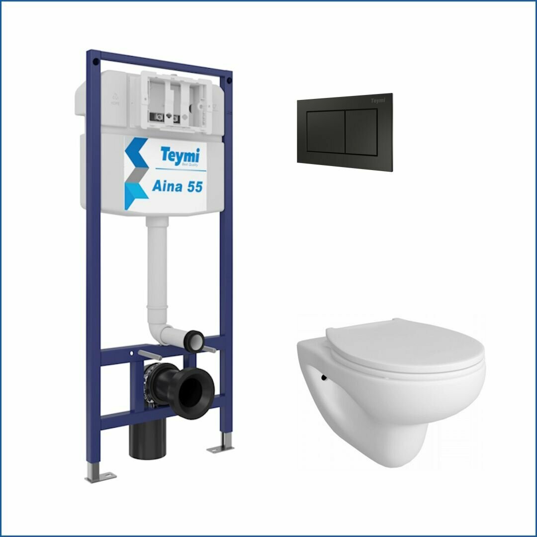 Отзывы на Инсталляция с унитазом комплект 5 в 1 Teymi унитаз подвесной безободковый Hanna Pro кнопка черная F13713