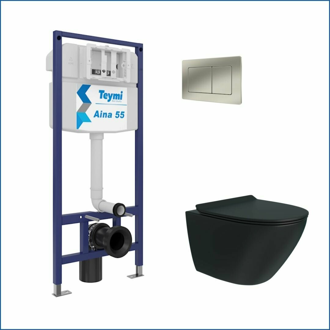Инсталляция с унитазом комплект 5 в 1 Teymi унитаз подвесной безободковый торнадо черный Lina Pro Vortex Black кнопка нержавеющая сталь F15012 38 880 ₽