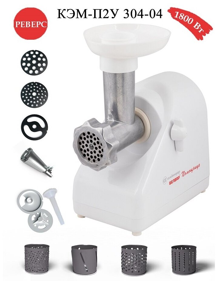 Мясорубка белвар П2У 304-04 1800 Вт, белый