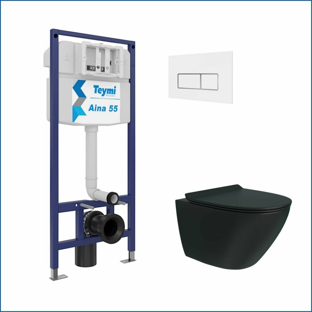 Инсталляция с унитазом комплект 5 в 1 Teymi унитаз подвесной безободковый торнадо черный Lina Pro Vortex Black кнопка белая F15017 37 810 ₽